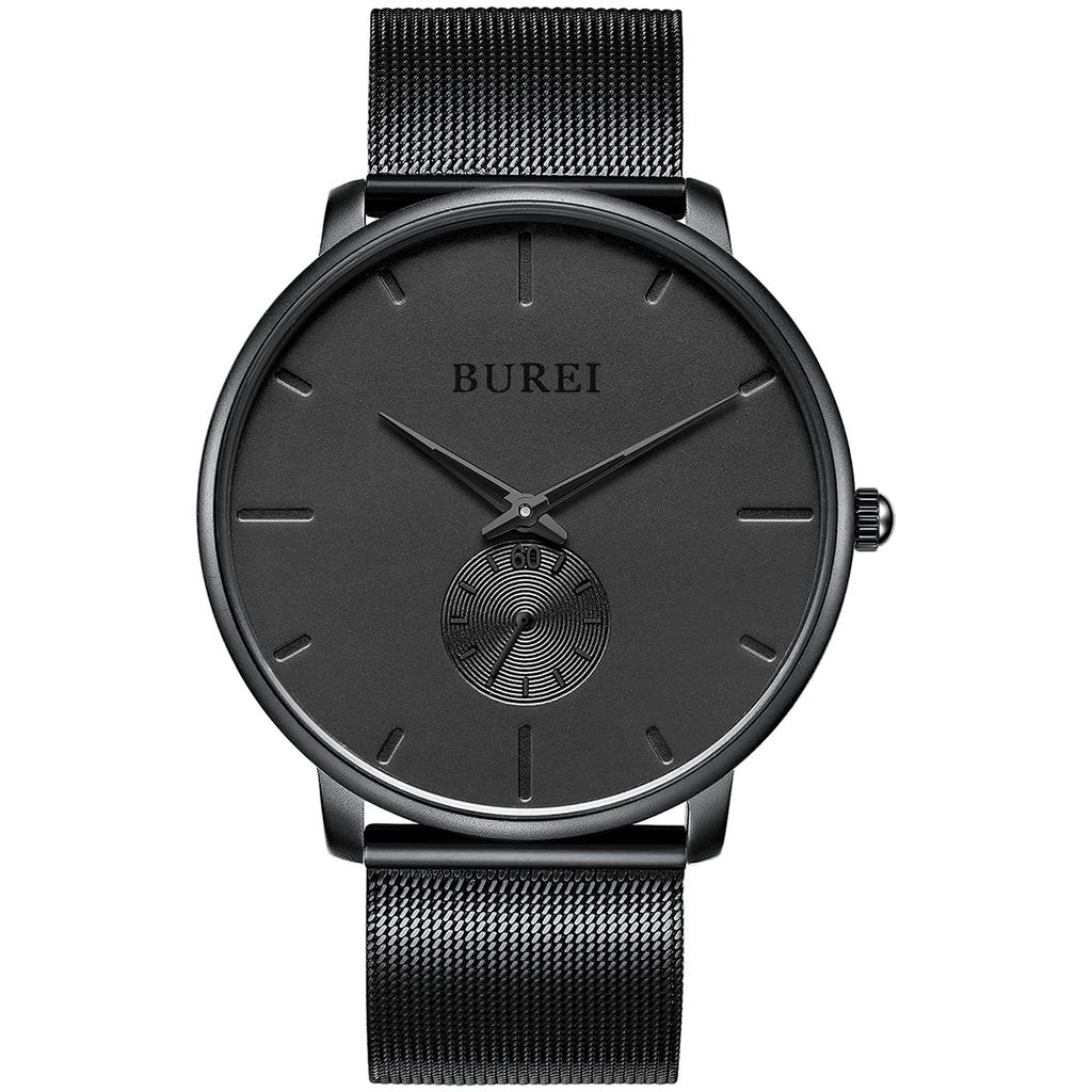 Черные простые стильные популярные часы Черные стильные брендовые водонепроницаемые часы Часы K [BUREI] Мужские Мужские Мужские