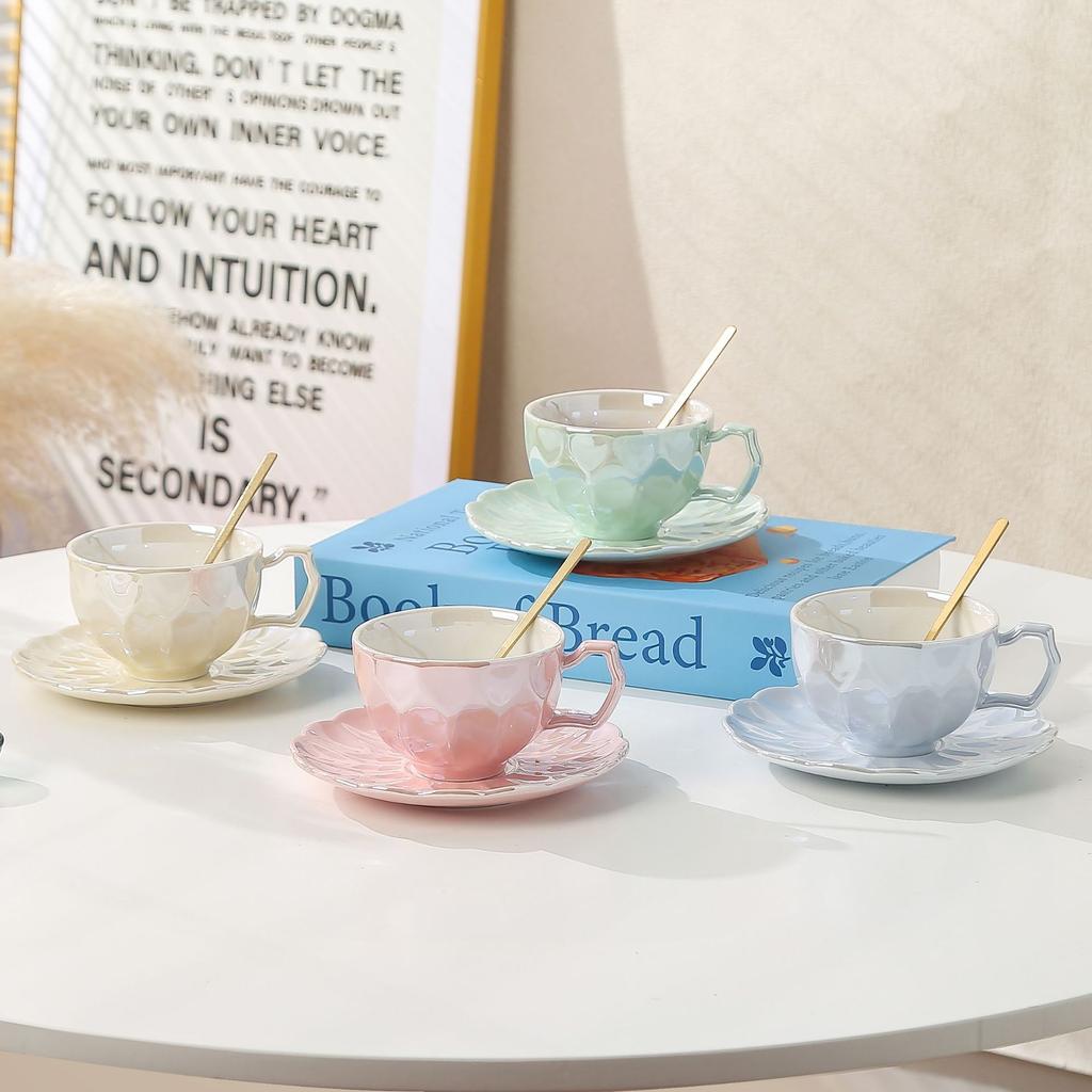 Сувенирная кофейная чашка с ложкой, перламутровая глазурь, кружка, блюдце, чтобы дарить клиентам подарки, пить воду в офисе, чашка свежая — купить товар онлайн с бесплатной доставкой по всему миру!