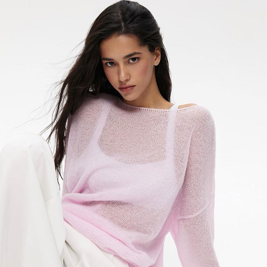 Женские прозрачные свитера с длинным рукавом, весна-осень, повседневный вязаный свитер с тонким круглым вырезом, топы, элегантный простой трикотаж