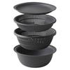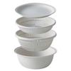 [Набор дуршлагов с различной глубиной] Набор дуршлагов с поддоном, который можно использовать в качестве крышки.. Поскольку они имеют разную глубину, их можно ставить друг на друга, увеличивая пространство на кухонной столешнице.