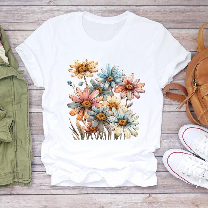(Азиатский размер) Повседневные футболки с милым цветком в стиле 90-х, женская одежда, футболка с коротким рукавом, модные женские футболки с графическим принтом