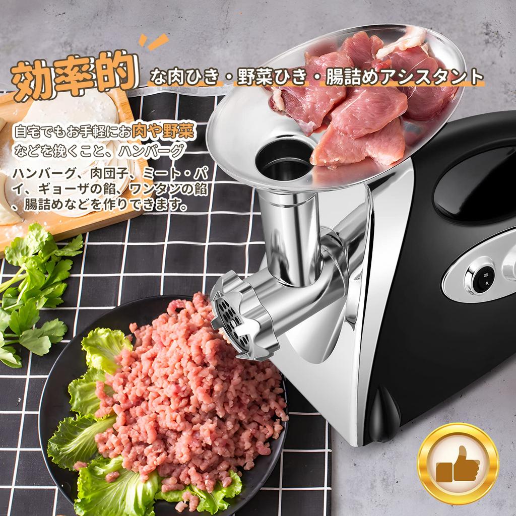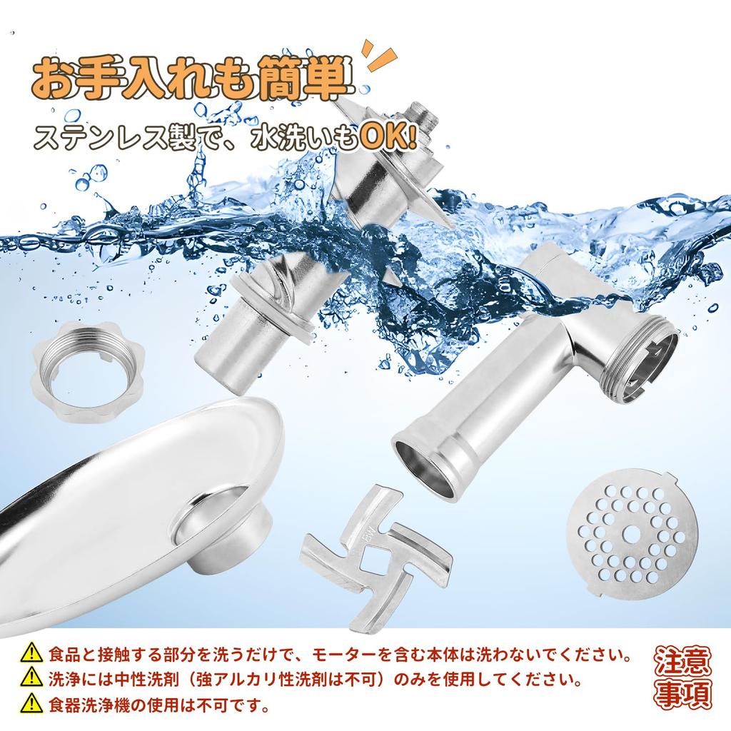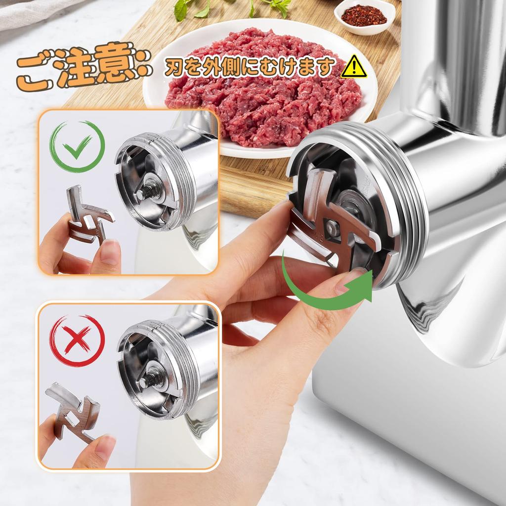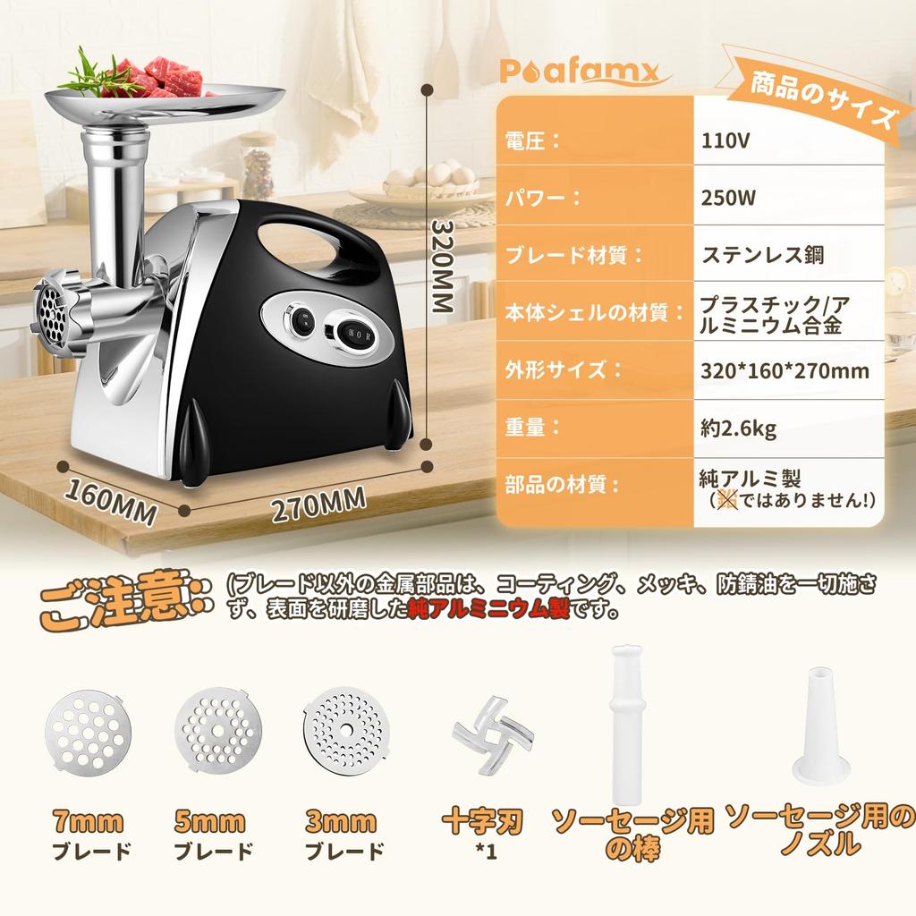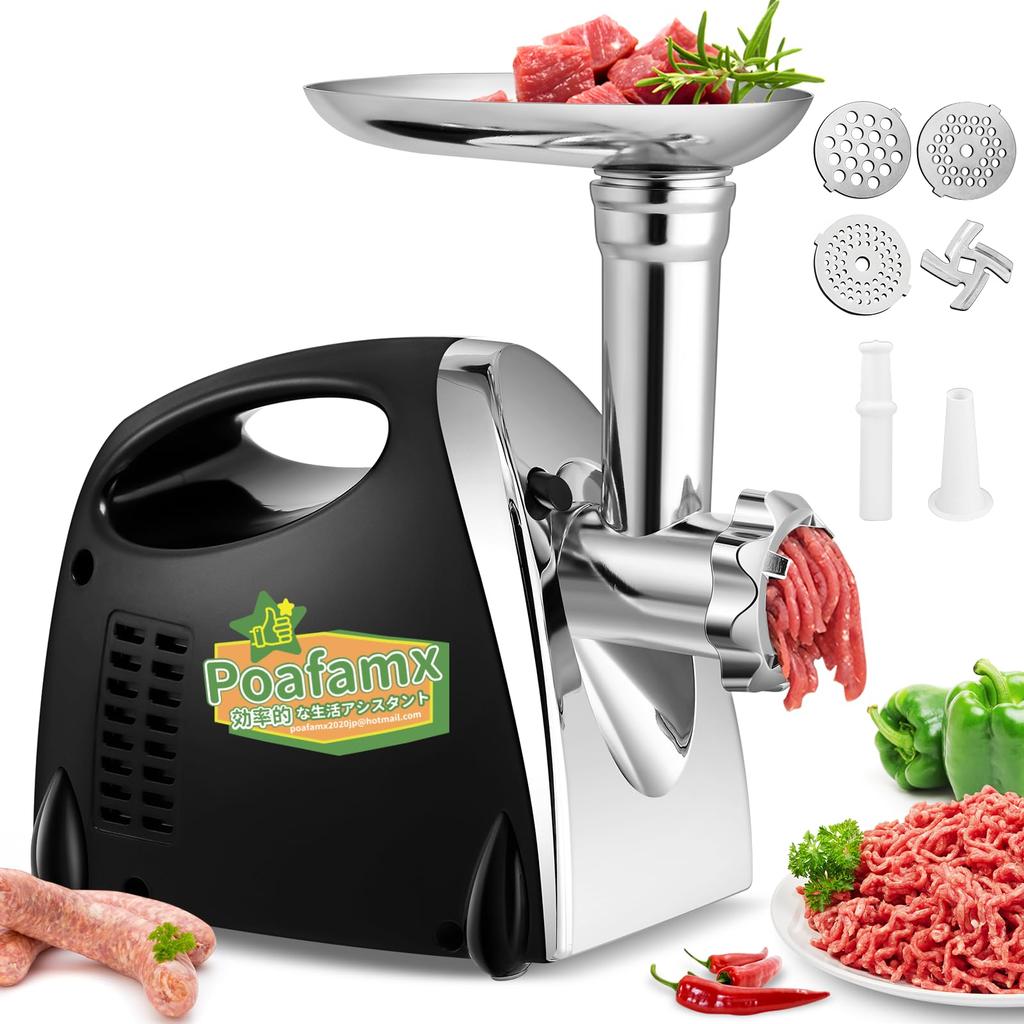 ``3 типа пластин'': Электрическая мясорубка Poafamx имеет 3 типа лезвий на выбор: 3/5/7 мм и 4 типа дисковых лезвий, что позволяет вам удовлетворять различные потребности в измельчении в зависимости от ингредиентов и типа приготовления, а также регулировать размер фарша.. Вы можете приготовить дома такие вкусные блюда, как гедза, крокеты и фрикадельки! Удобно и практично — всего один блок! уведомление: Мясо с кожей или сухожилиями, а также овощи с высоким содержанием влаги измельчать нельзя.