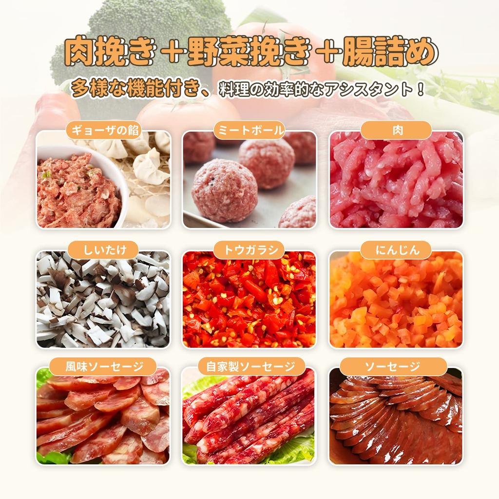 «Высокая производительность, высокая эффективность»: Благодаря выходной мощности 250 Вт мощный двигатель может использоваться для обработки различных видов мяса и овощей, что значительно повышает эффективность работы мясорубки, а управлять работой и останавливать ее можно одним нажатием кнопки.. Экономьте время и усилия по сравнению с ручной мясорубкой.