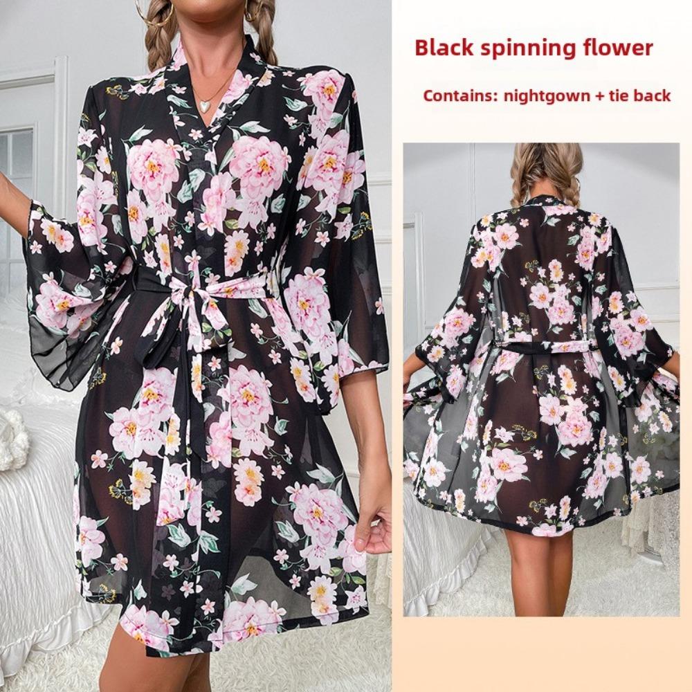 Шифоновая пижама с принтом, легкая, роскошная, с длинными рукавами, ночная рубашка, халат, домашняя одежда — купить товар онлайн с бесплатной доставкой по всему миру!