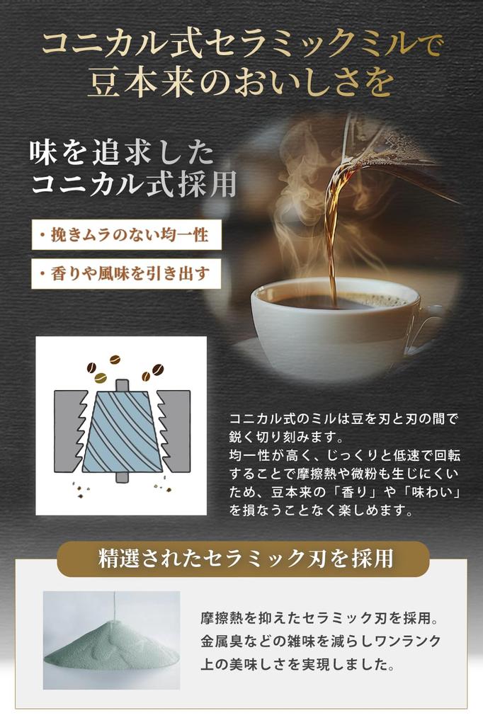 ✅ [Под наблюдением бариста/Использует коническую форму для достижения лучшего вкуса] Использует коническую форму, которая не влияет на оригинальный «аромат» и «вкус» зерен. Используя керамическую мельницу под контролем бариста, мы предотвратили появление неприятных привкусов, таких как металлический запах, и достигли более высокого уровня вкуса.
