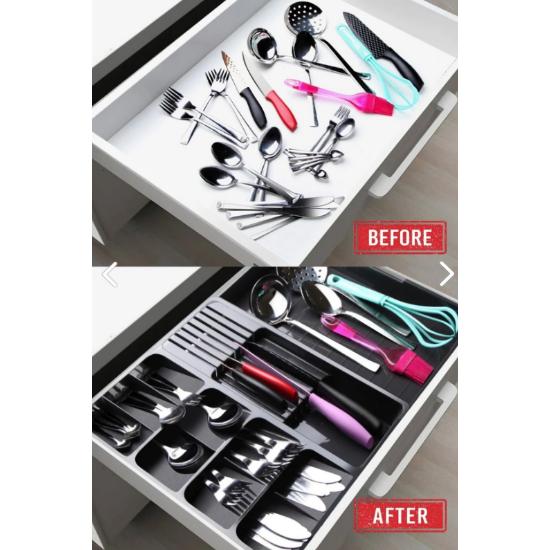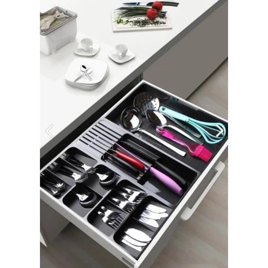 Макси-ящик для ножей и столовых приборов антрацитового цвета с регулируемой выдвижной направляющей