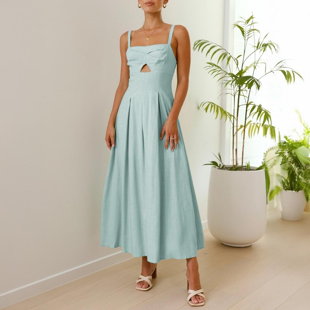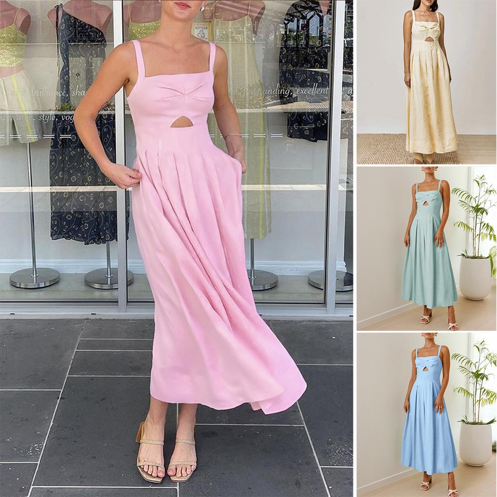 Весенне-летние женские повседневные элегантные праздничные платья однотонного цвета с высокой талией и бретелькой через шею