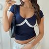 Весенне-летняя женская сексуальная облегающая трикотажная футболка с коротким рукавом Color Collision