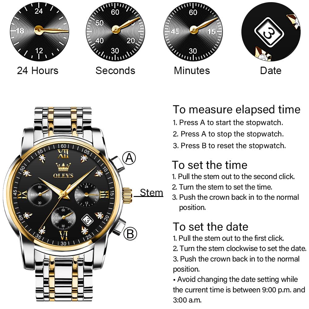 Часы OLEVS Содержимое набора: Мужские часы, коробка и инструкция в комплекте.. Мужские наручные часы, повседневные, популярные, многофункциональные часы, приводная система: аналоговый кварц (батарея в комплекте). Функциональный хронограф (24 часа, 60 минут, 60 секунд); отображение даты.