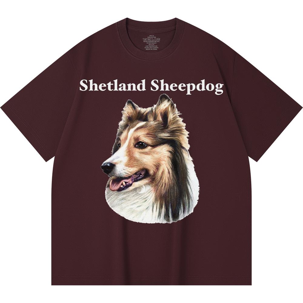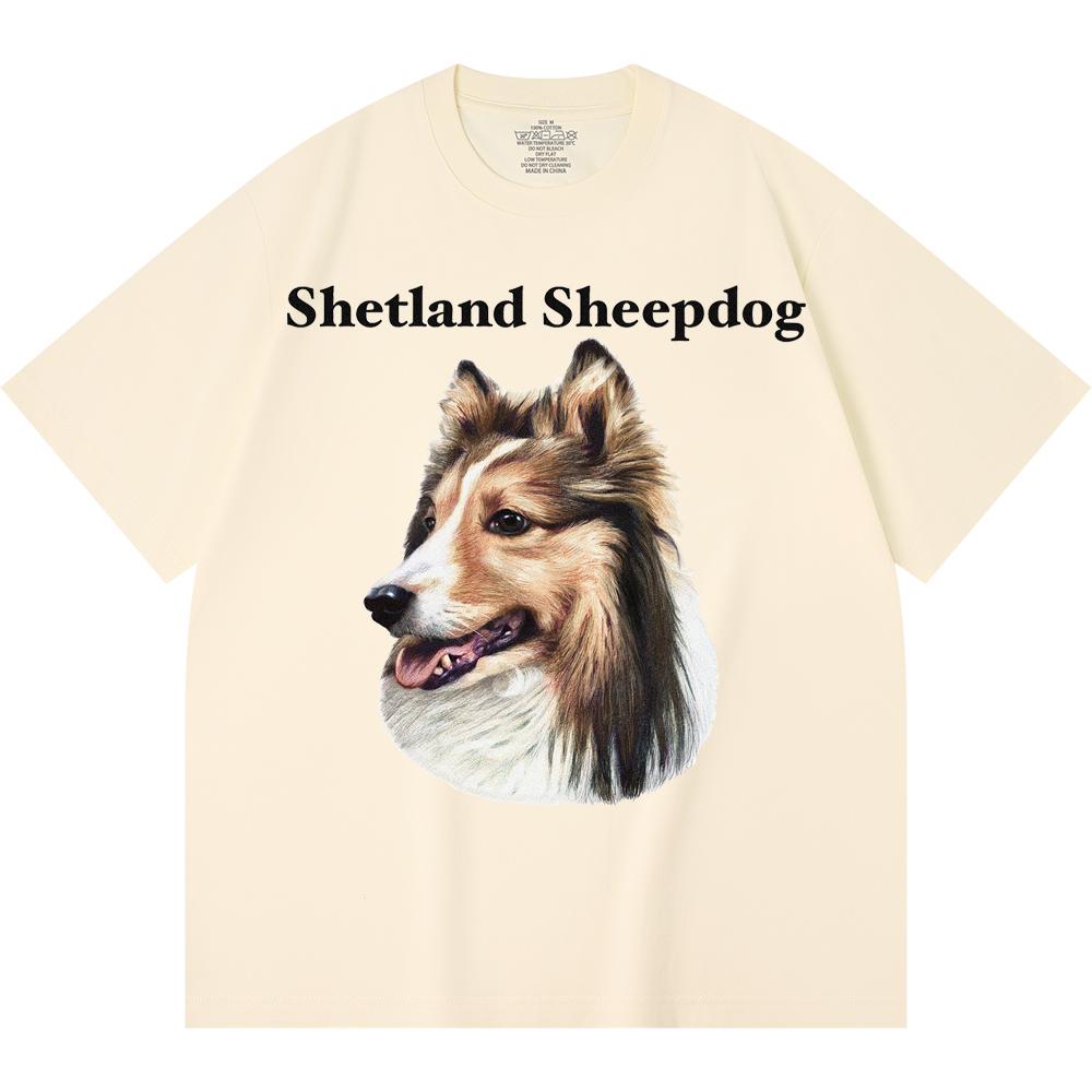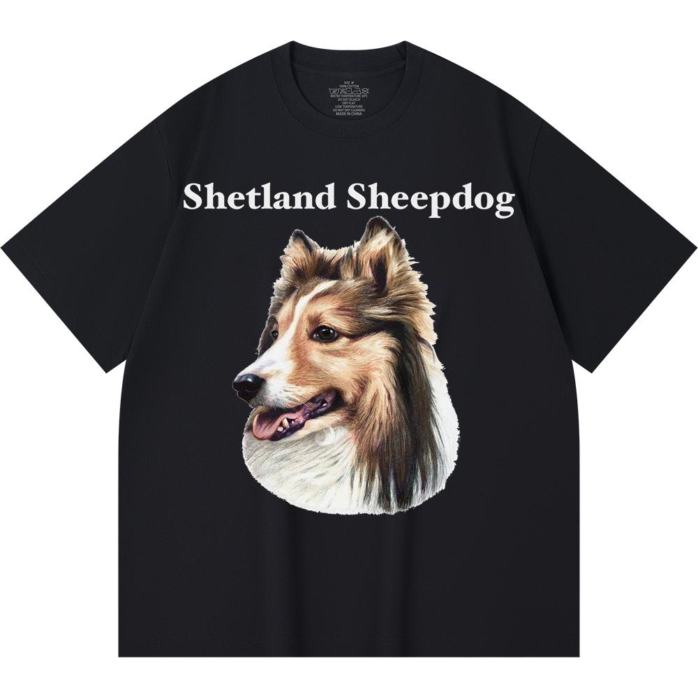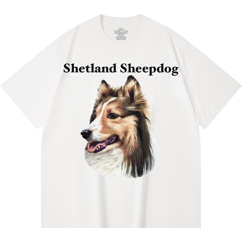 Футболка из 100% хлопка плотностью 230 г/м2 с принтом шетландской овчарки, забавная футболка из чесаного хлопка в стиле Харадзюку