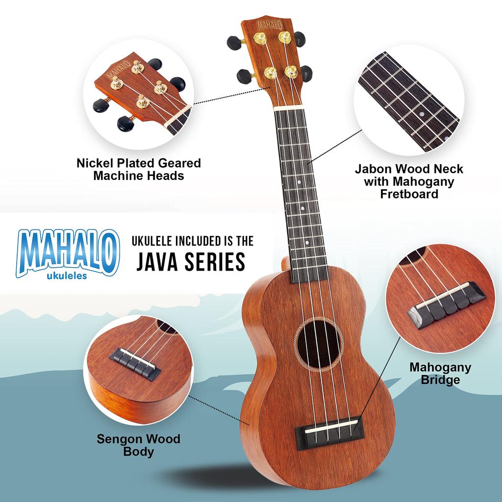MAHALO Java Series Soprano Ukulele Perfect Startup Kit MJ1 TBRK