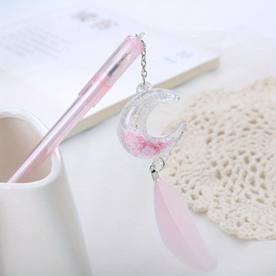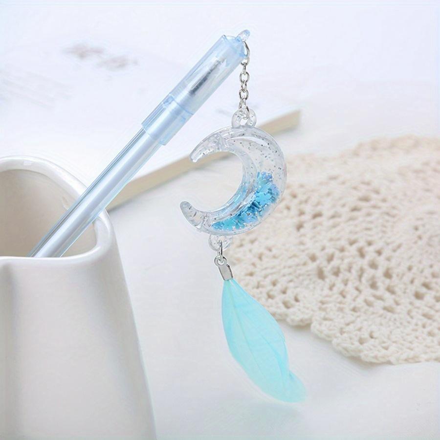 10 шт. 0,5 мм креативная гелевая ручка с блестками и подвеской в виде луны, ручка-сердечко, канцелярская ручка на водной основе для подписи