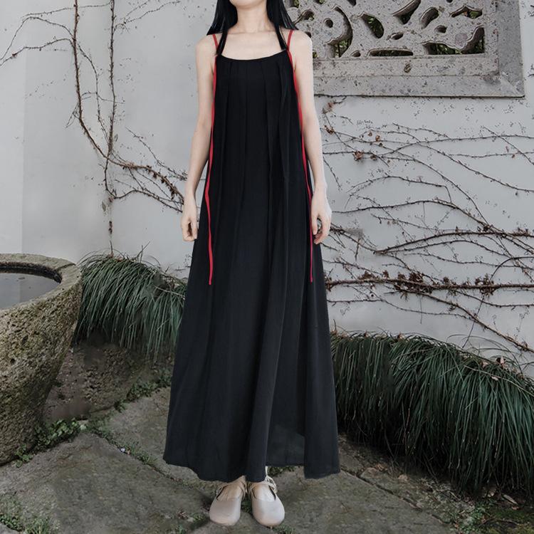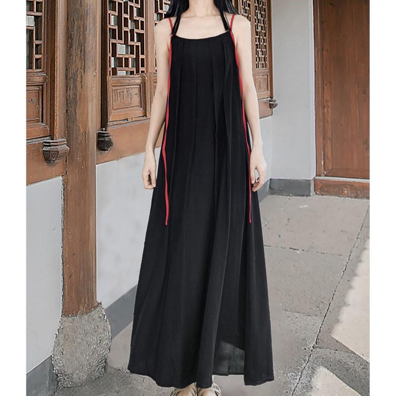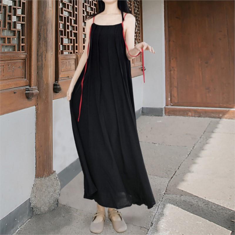 Женское летнее нишевое платье в китайском стиле с контрастным вырезом-лодочкой и А-силуэтом, винтажное платье без рукавов