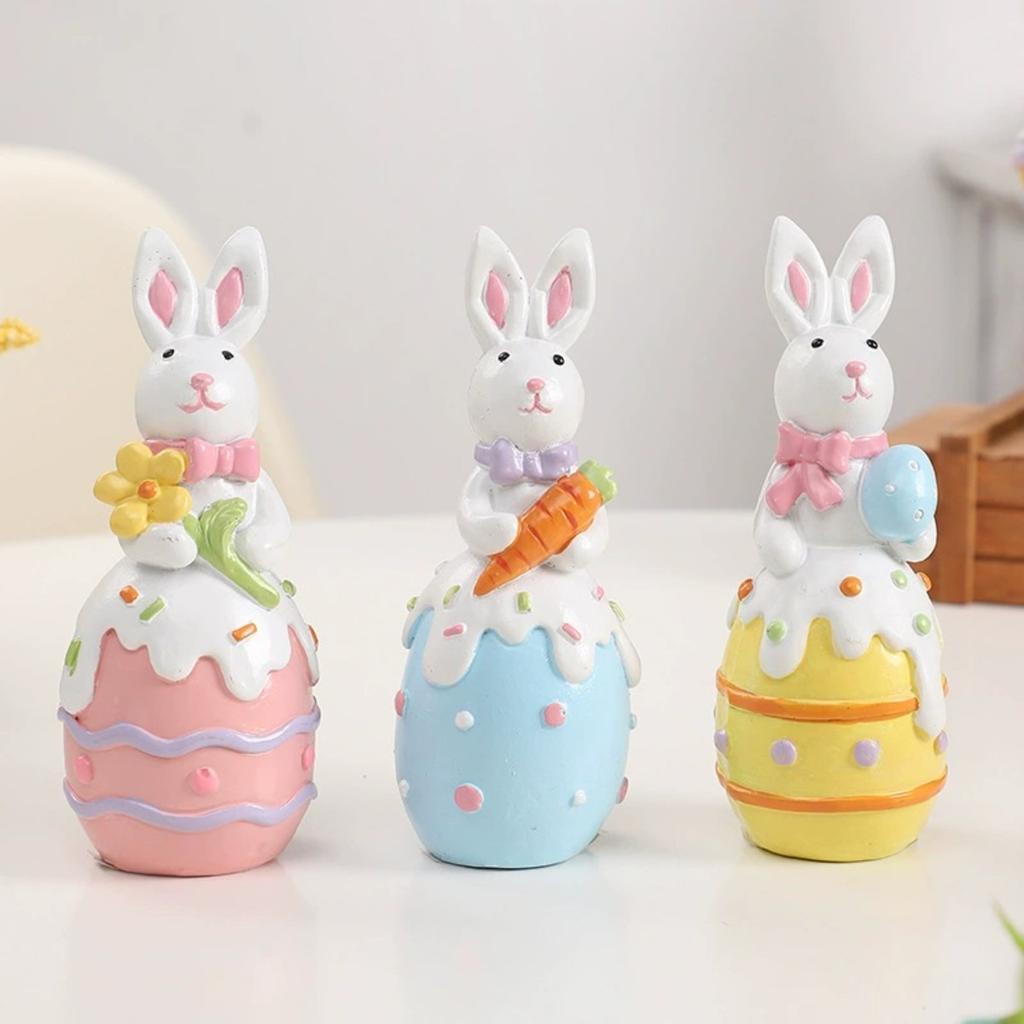 Набор из 3 пасхальных украшений в виде яиц кролика, весенние пасхальные украшения в виде кроликов, фигурки для украшения стола для вечеринки, домашнего праздника, милый кролик, пасхальный декор