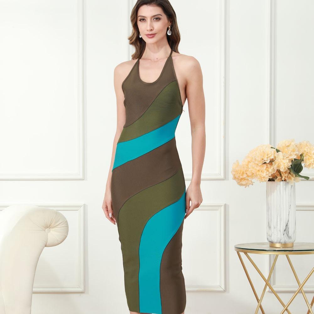 Летнее платье с длинным воротником, модное и тонкое, облегающее, с юбкой на бедрах, женское 2025, бандажное платье, женская одежда — купить товар онлайн с бесплатной доставкой до всему миру!