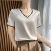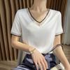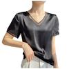 Персиковая женская рубашка 2025 года, летняя новая шелковая атласная футболка с коротким рукавом, женская сетчатая однотонная жилетка, темпераментная рубашка с V-образным вырезом