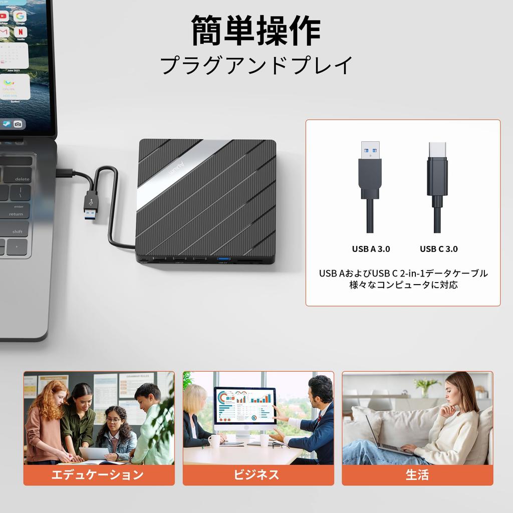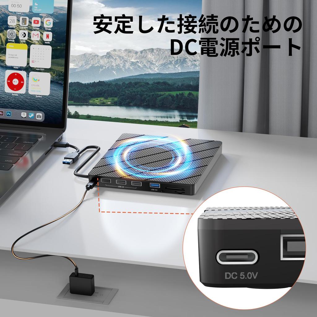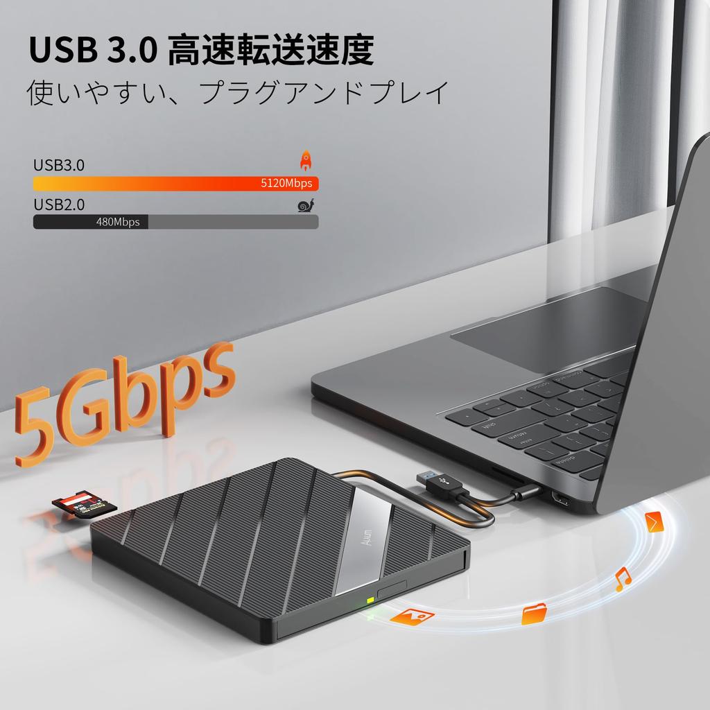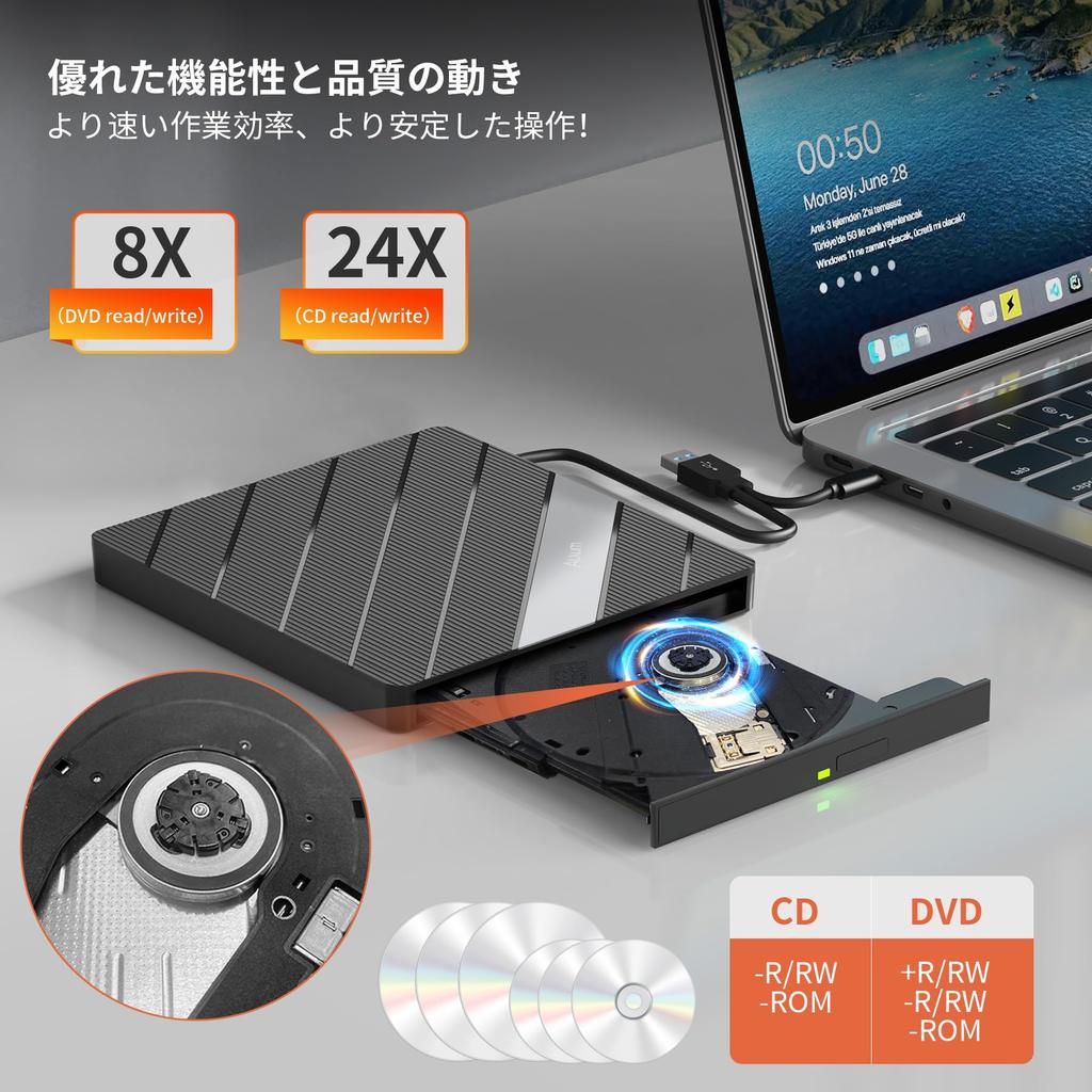 Внешний привод CD/DVD Alxum 8 в 1, сверхскоростной CD-дисковод с двумя разъемами и слотом USB-порта, совместимый с внешним оптическим приводом DVD 8X.