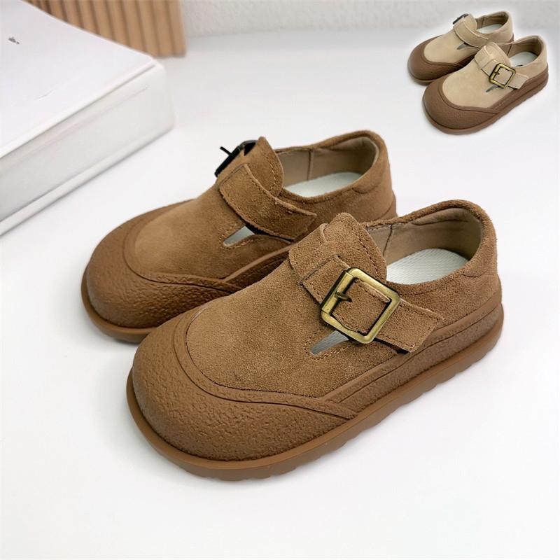 Детская повседневная обувь в стиле ретро с большим носком, кожаные туфли для мальчиков и девочек, одинарные туфли из матовой кожи