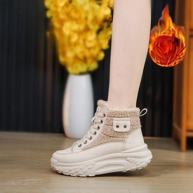 Зимние ботинки Женские осенние и зимние высокие ботинки Плюс бархатные толстые теплые короткие ботинки Хлопковая обувь Женская обувь