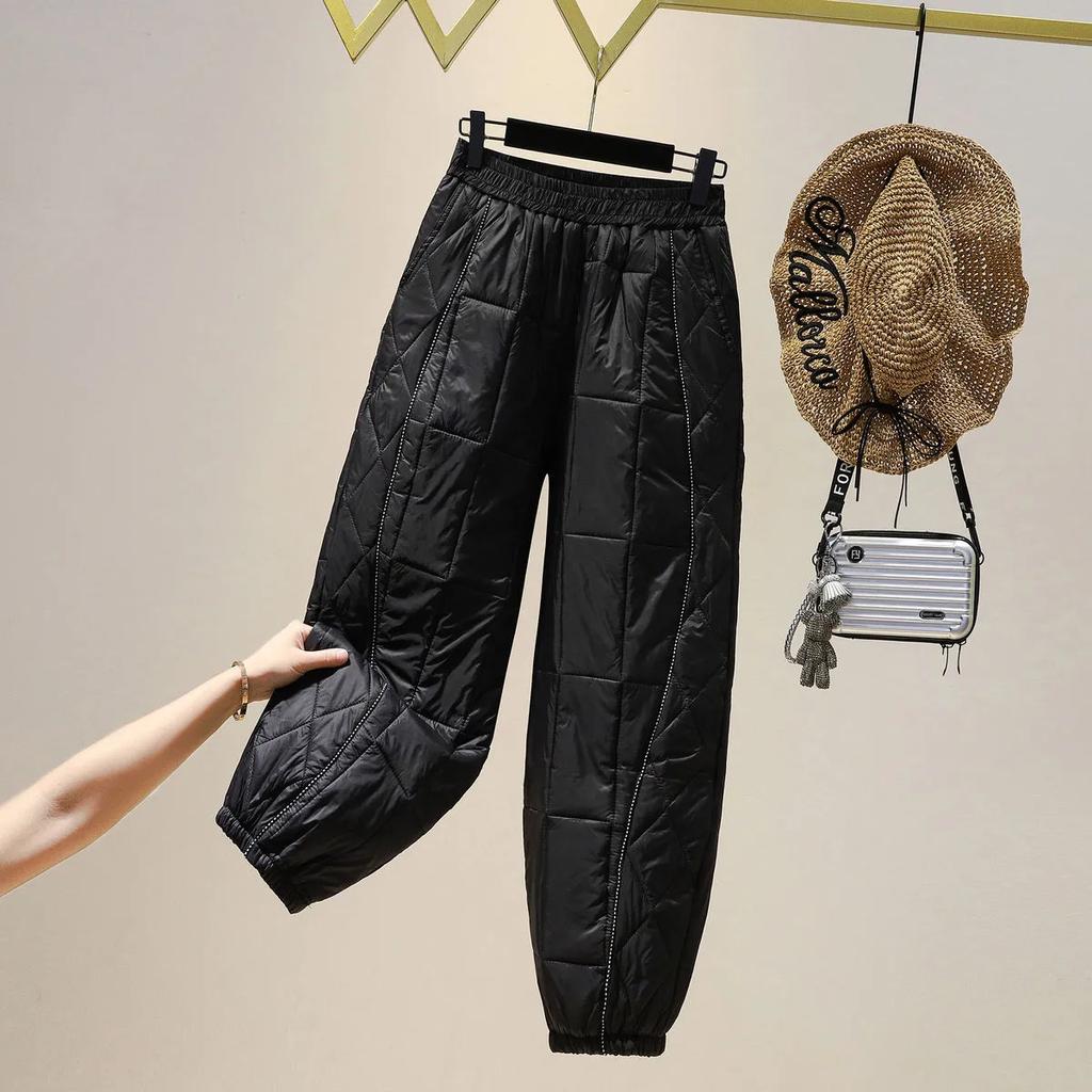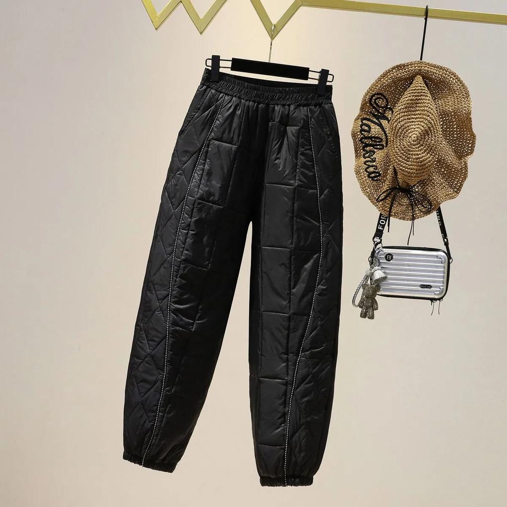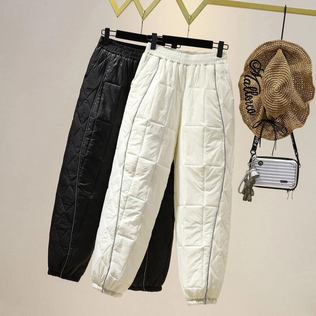 Модные толстые хлопковые брюки женские зимние эластичные шаровары с высокой талией