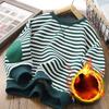 Осенне-зимний детский свитер в стиле колледжа с полосатыми нашивками и круглым вырезом, а также топ из плотного бархата с длинными рукавами для мальчиков и девочек