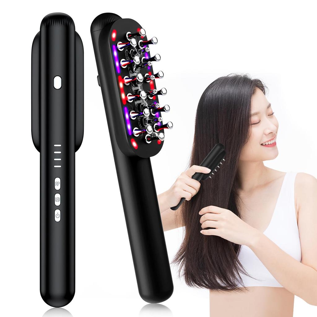 [4 функции, автоматическое отключение через 10 минут] Электрическая щетка имеет 14 зубцов-электродов и 6 вводных зубцов в центре. При включении функции щетки EMS, RF, EP и LED будут работать одновременно и могут использоваться на коже головы, лица, шеи и частей тела.. Микроток + тепло + проникновение работают вместе, обеспечивая более эффективный уход за кожей. Он также имеет функцию автоматического отключения, которая автоматически отключает питание примерно через 10 минут использования.. Мужчины и женщины могут насладиться салонным уходом, не выходя из дома, всего за 10 минут, и это не будет стоить целое состояние.. Использование электрической щетки утром и вечером окажет огромное влияние на стойкость вашего макияжа на следующий день.. Интенсивность EMS варьируется в зависимости от переносимости вашей кожи.. Если у вас чувствительная кожа, немедленно прекратите использование.