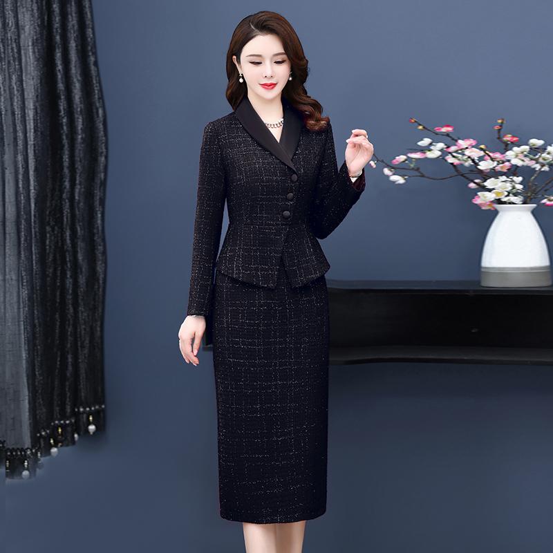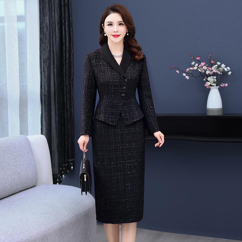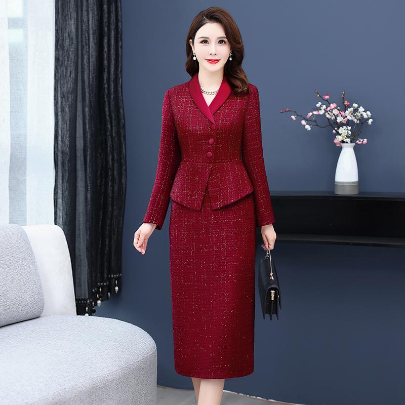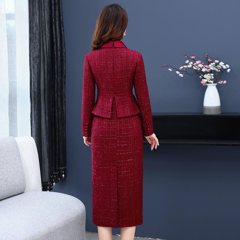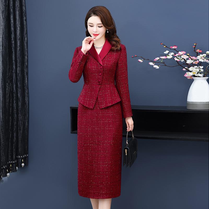 Зимнее модное тонкое свадебное платье для матери, высококачественные искусственные шерстяные платья из двух предметов