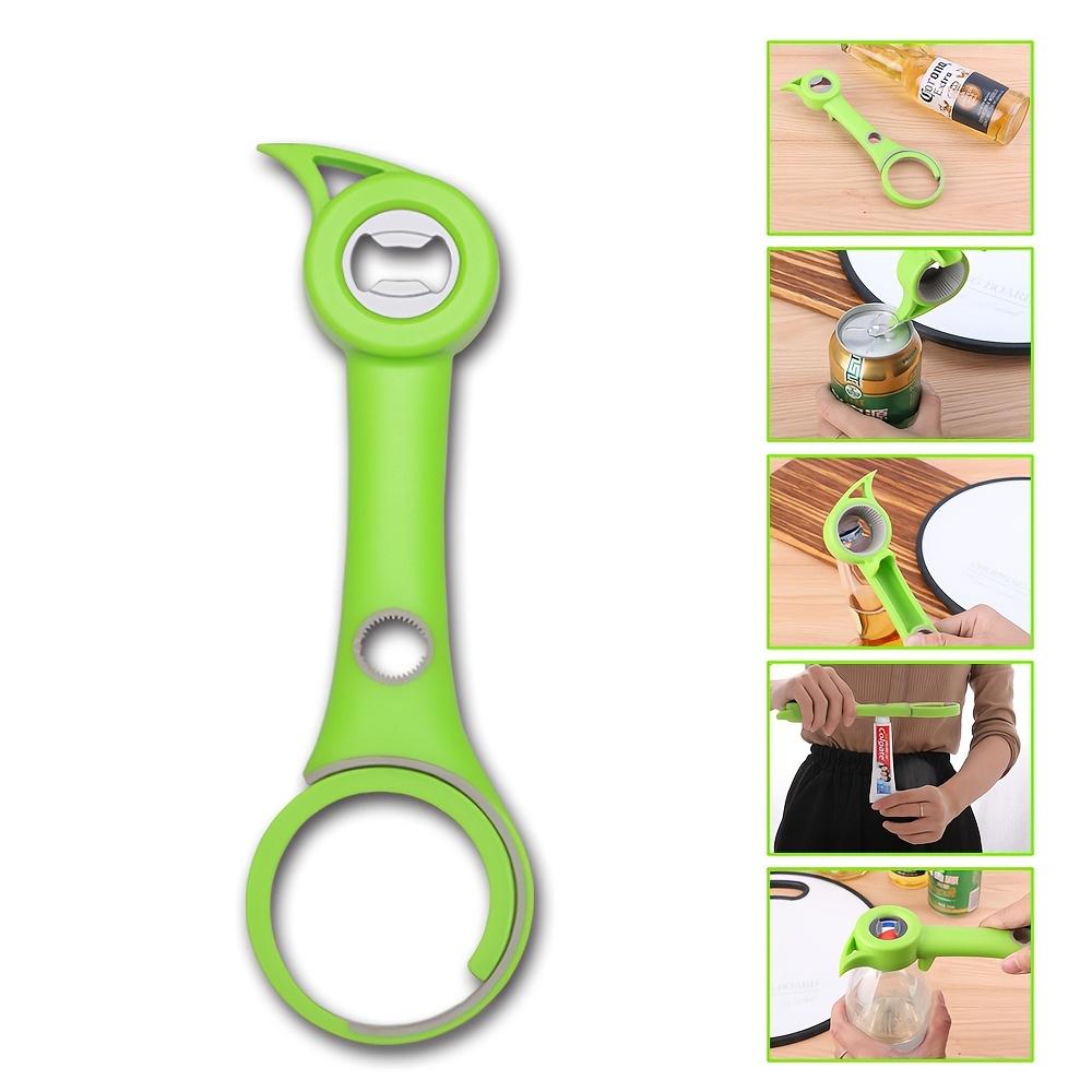 Многофункциональный кухонный инструмент 6 в 1, открывалка для пластиковых банок, лезвие из нержавеющей стали, спиральный откручиватель крышек, съемник крышек для пива и газировки
