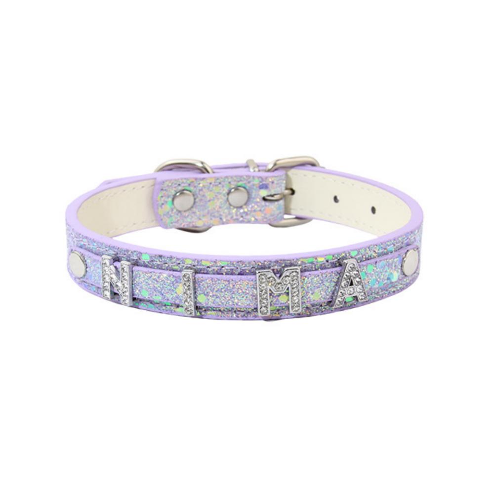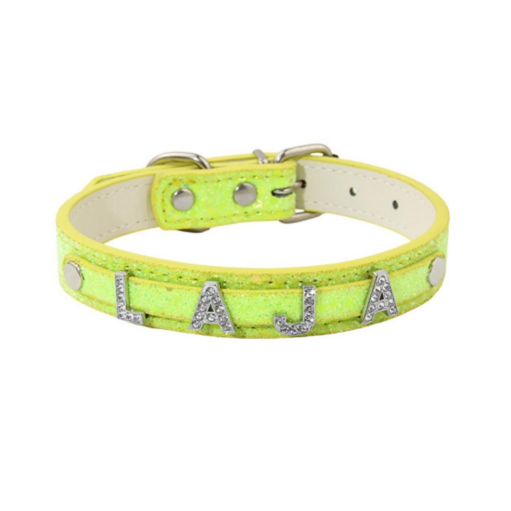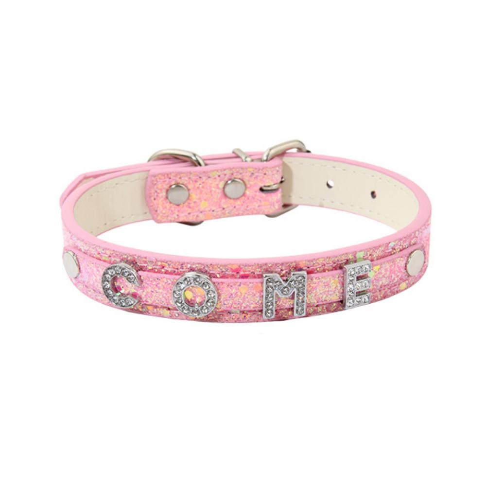 Товары для животных Поводок с бриллиантовыми буквами, украшенный пайетками, кожаный ошейник