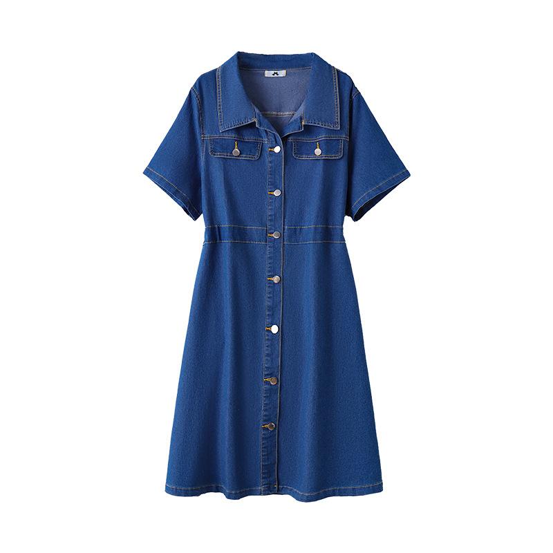 Женское джинсовое платье больших размеров, короткое летнее тонкое рабочее платье с воротником-поло