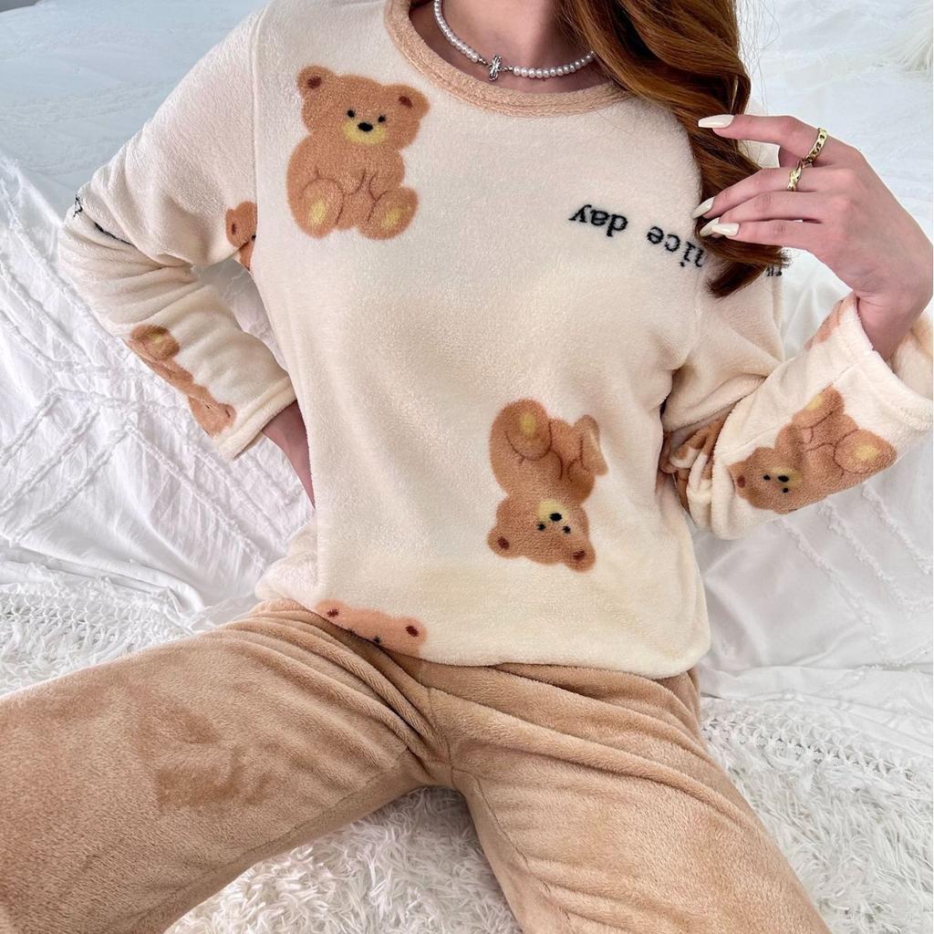 Осень и зима новые женские теплые пижамы домашняя одежда костюм мультяшный милый принтованный медведь пижама домашняя одежда зимняя одежда
