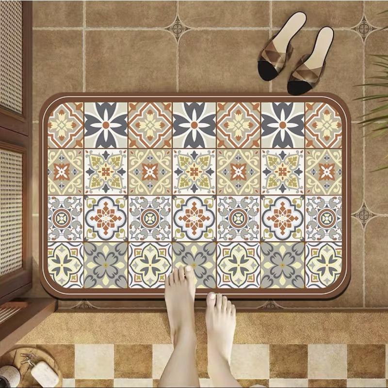 Легкий роскошный коврик для пола в стиле ретро из диатомовой грязи для ванной комнаты, впитывающий воду, быстросохнущий коврик для двери, противоскользящий коврик для ног, коврик для входной двери