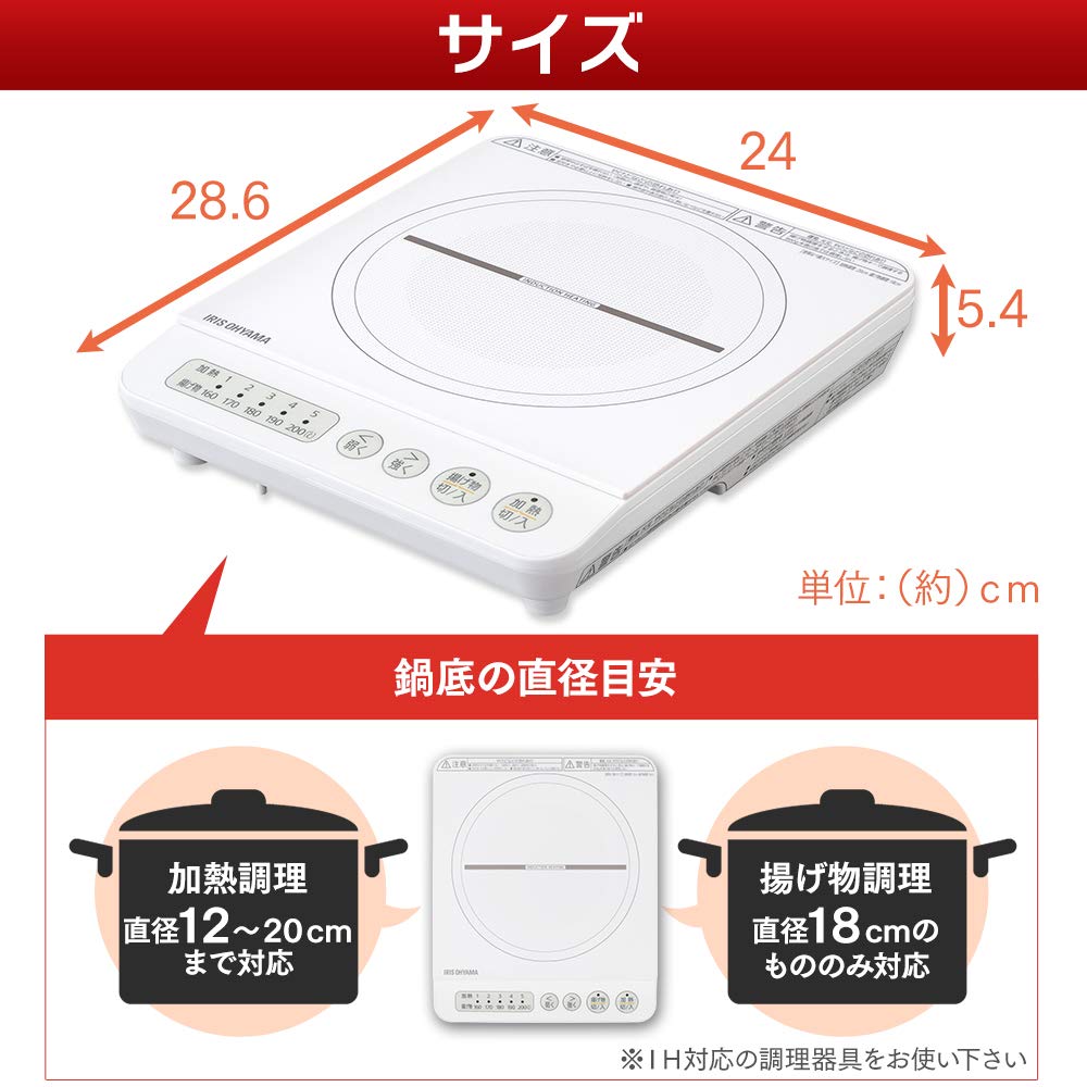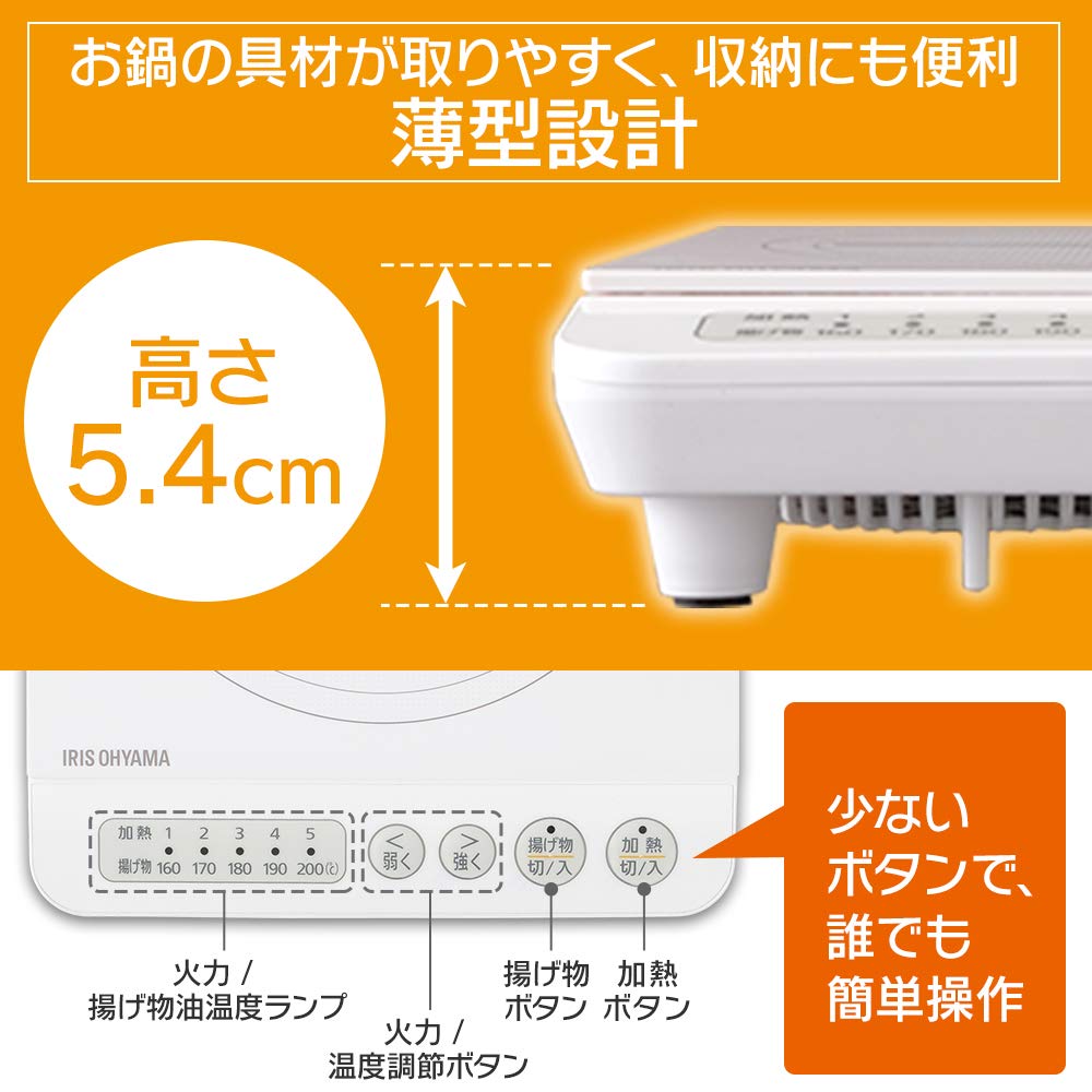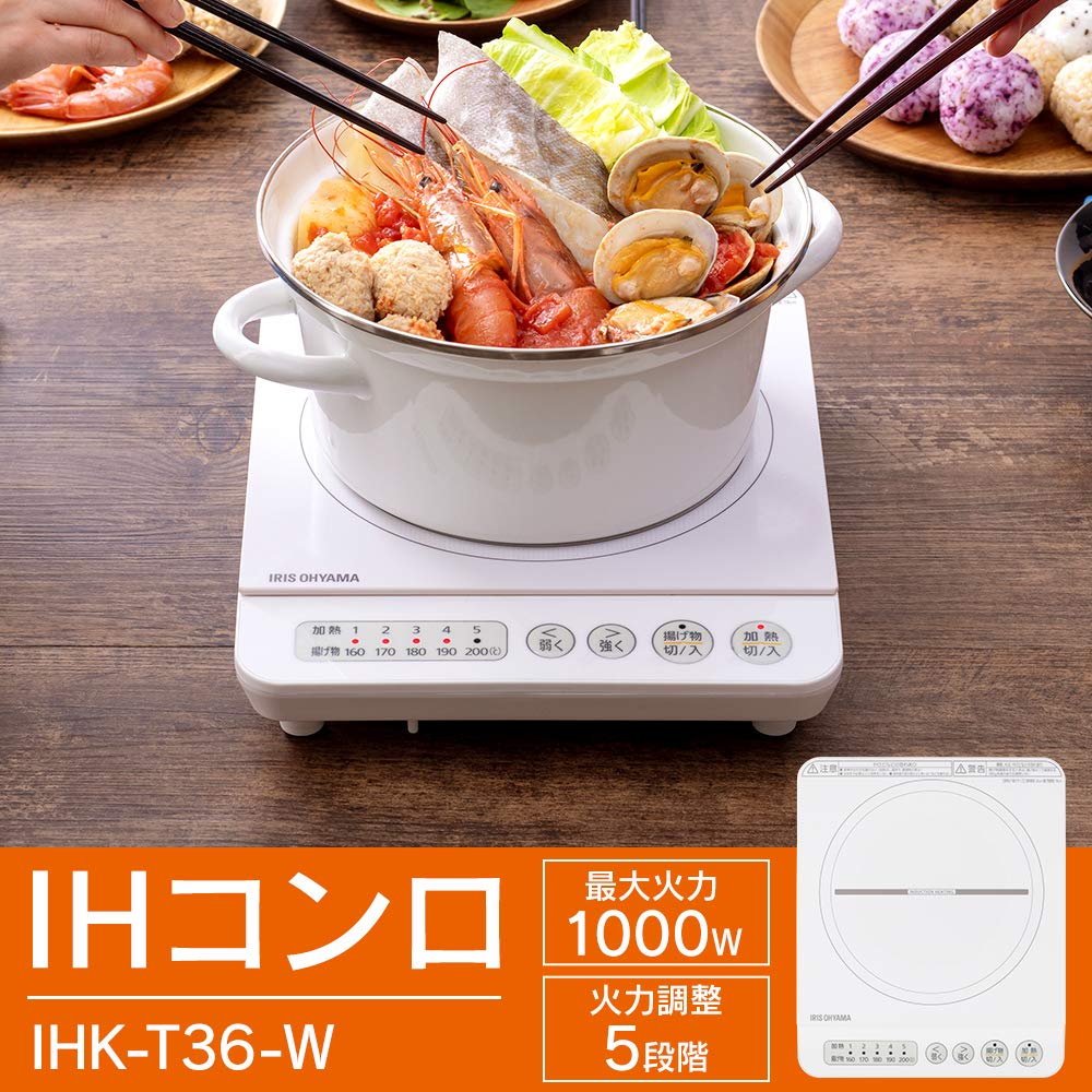 Iris Ohyama IH 1 IH Cooking 5 Levels Single Home White Stove, Burner, Heater, 1000 Вт, Adjustment, Use, Use, Pot, Sukiyaki, IHK-T36-W