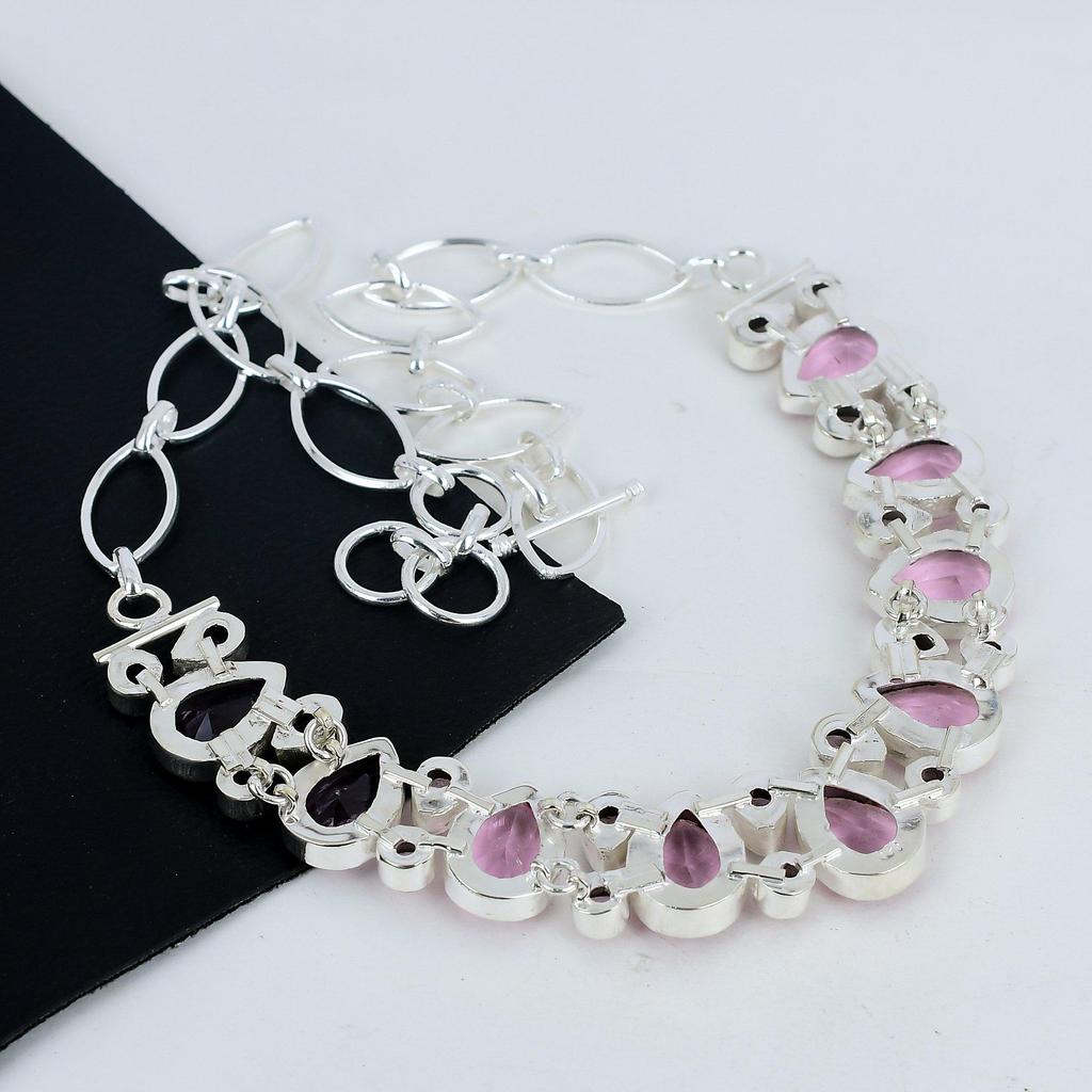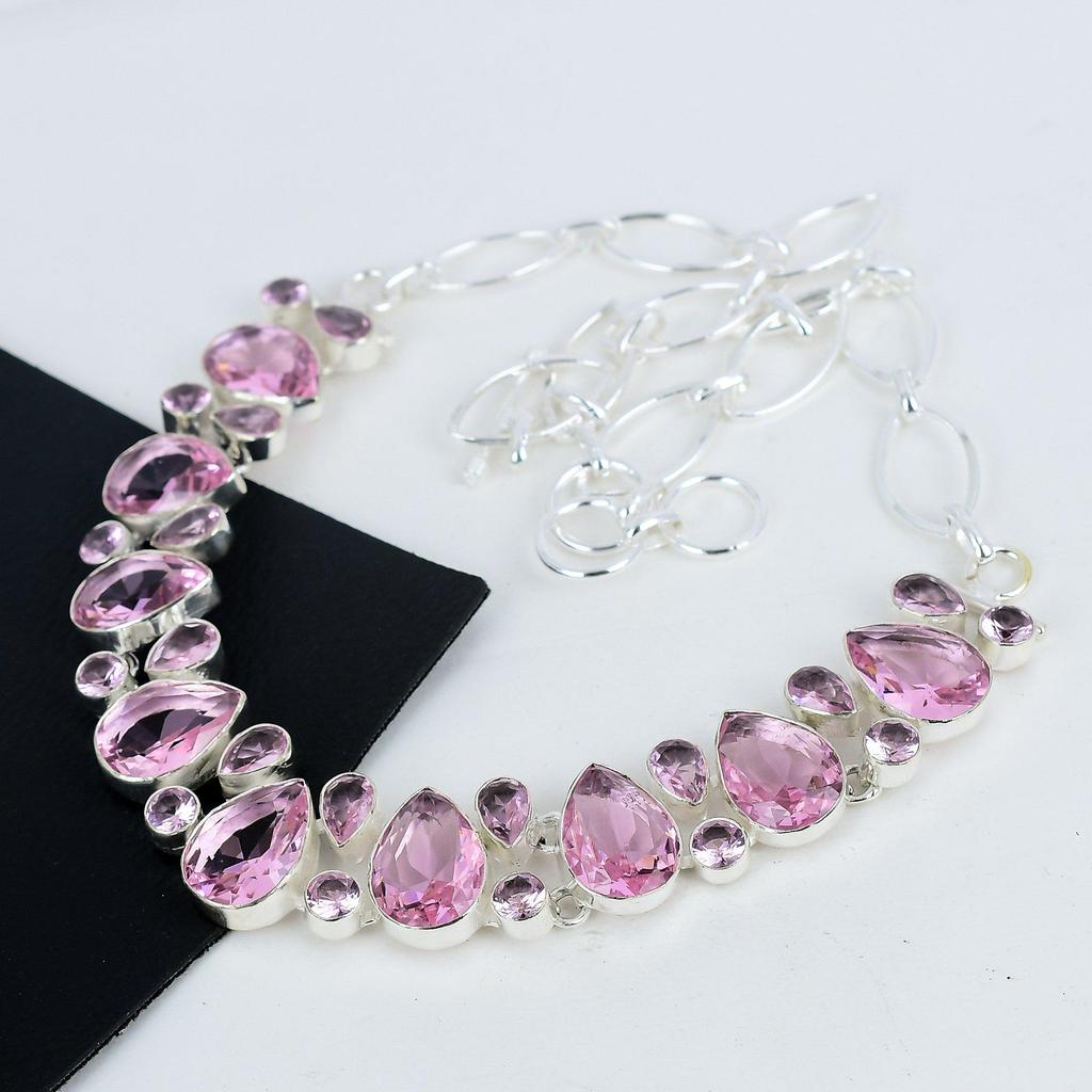 Красивое розовое ожерелье из драгоценного камня кунцит ручной работы из стерлингового серебра 925 пробы, розовое серебряное ожерелье с кунцитом для жены, ожерелье унисекс, подарок на вату
