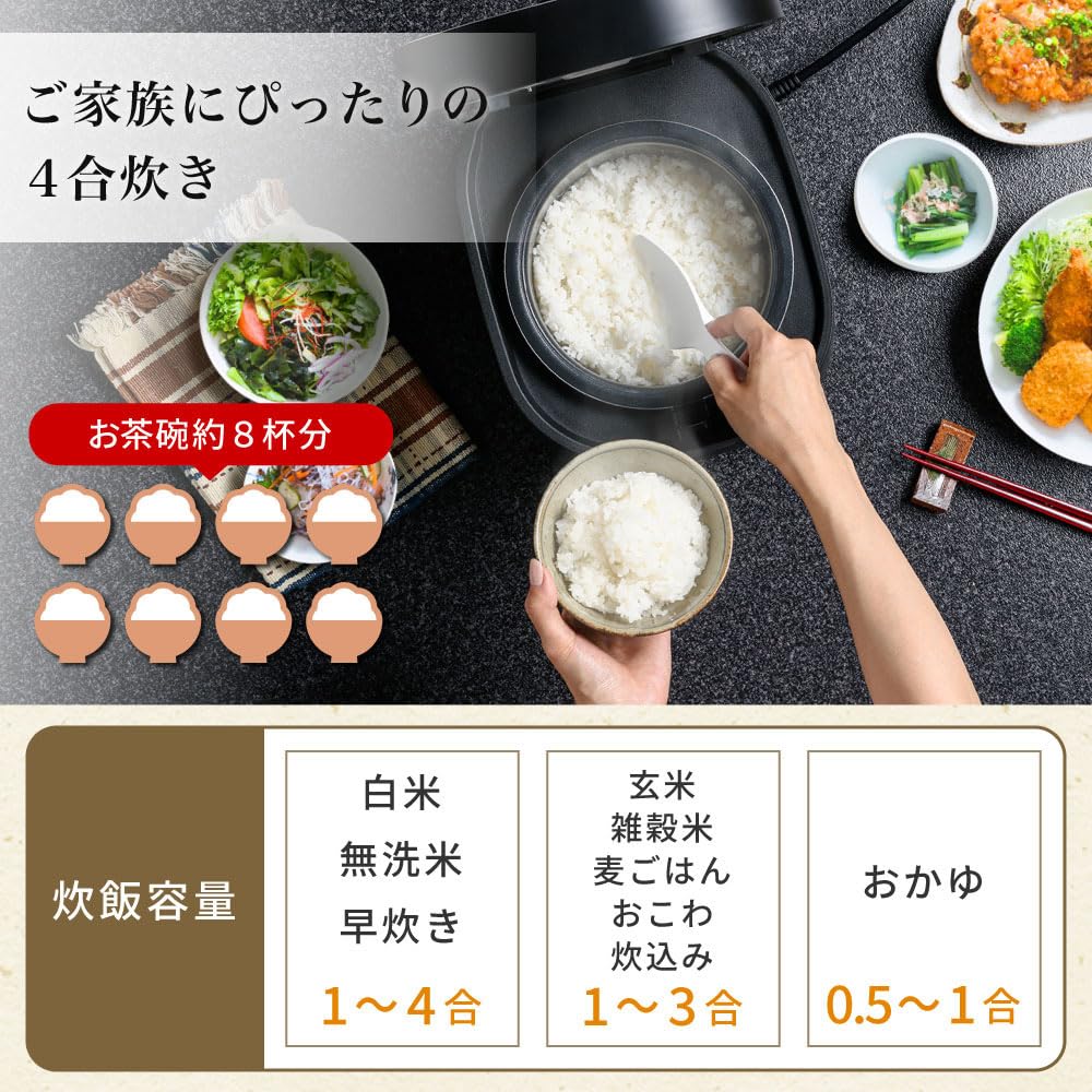 ★ Рисоварка IH на 4 чашки украсит ваш обеденный стол 11 видами сытных блюд из риса, которые также можно использовать для приготовления блюд на пару.
