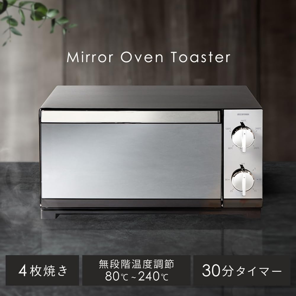 Тостер IRIS OHYAMA, тостер, зеркальный стиль, горизонтальный, для 4-х предметов, плавная регулировка температуры, противень в комплекте, 1300 Вт, черный POT-413-B