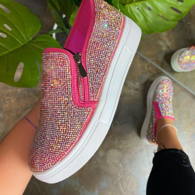Женские повседневные туфли на плоской подошве, модные мокасины со стразами и шитьем на платформе, роскошные туфли, повседневная удобная женская обувь