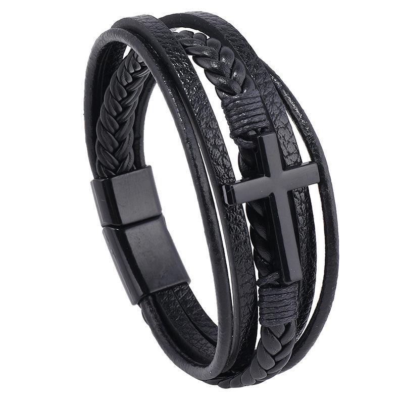 Многоцветный крест мужской PU кожаный плетеный магнитный браслет с пряжкой ювелирные изделия подарок