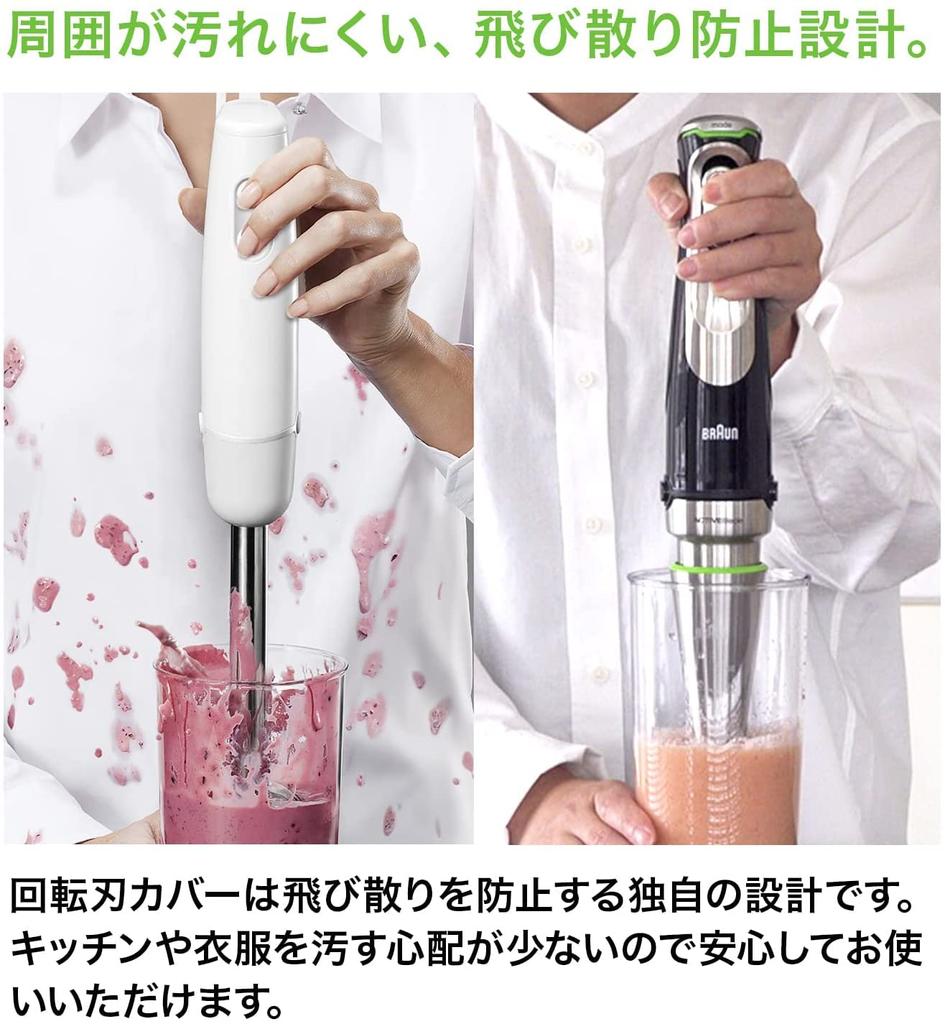 It comes with a food processor and a whisk, and in addition to the basic functions of a hand blender, such as "crushing" and "mixing," it can be used for a wide range of purposes such as "chopping," "slicing," "shredding," "dicing," "whipping," and "kneading."