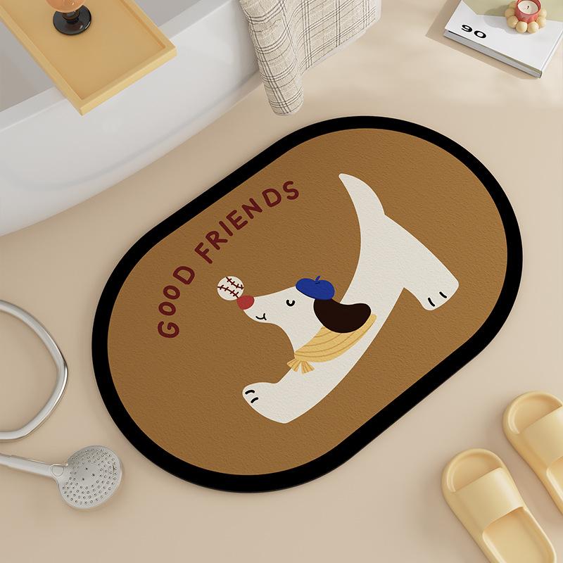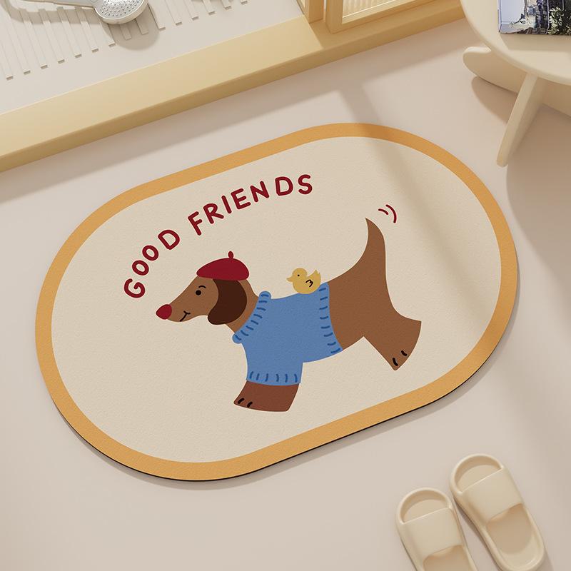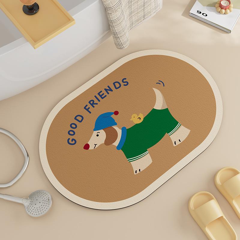 Коврик для пола с изображением диатомовой грязи, мультяшный щенок, противоскользящий коврик для туалета, двери ванной комнаты, износостойкий водопоглощающий коврик