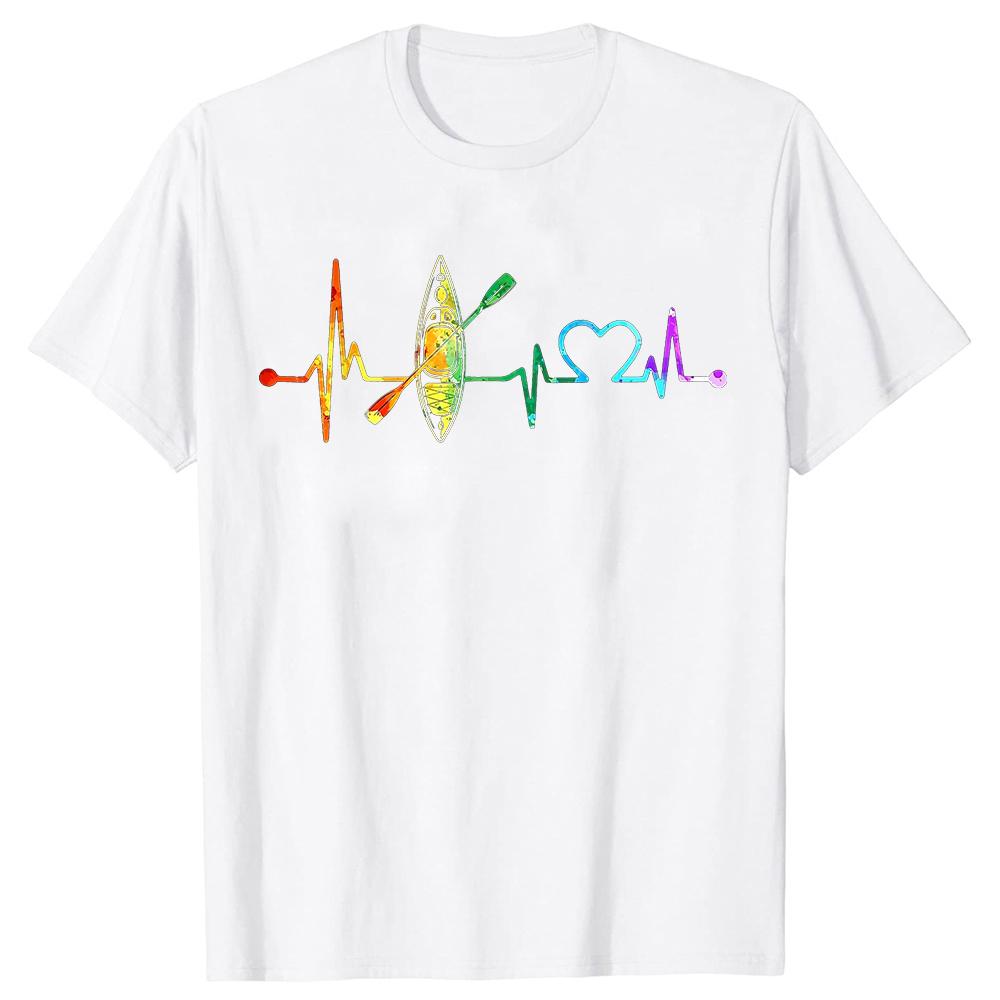 Любитель каякинга My Heartbeat Is A Kayak Винтажная цветная футболка для мужчин Новые топы Футболки Хлопковая мужская футболка Простой стиль с коротким рукавом