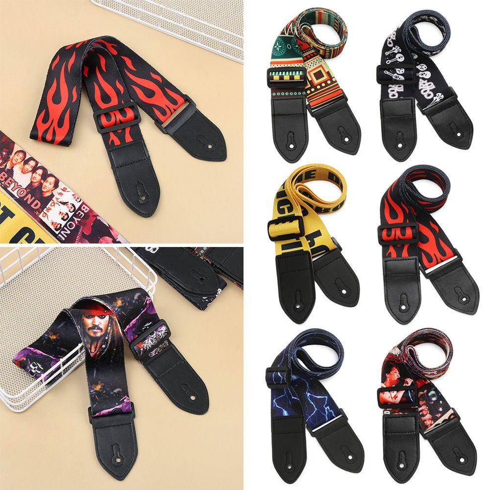 Профессиональный нейлоновый ремень для гитары с концами из ПУ-кожи, гитарные аксессуары, синий дизайн с подсветкой, ремень для гитары, ремень для бас-гитары