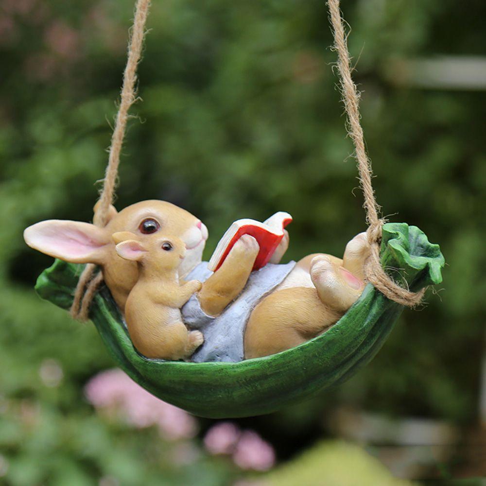 Украшение для дома, скульптуры для заднего двора, бытовое украшение, садовое украшение, статуя кролика, качающийся кролик