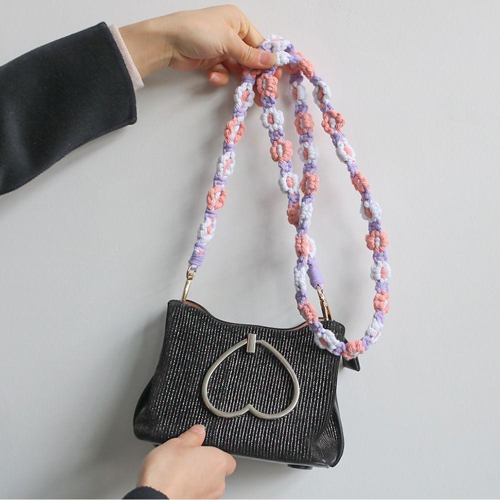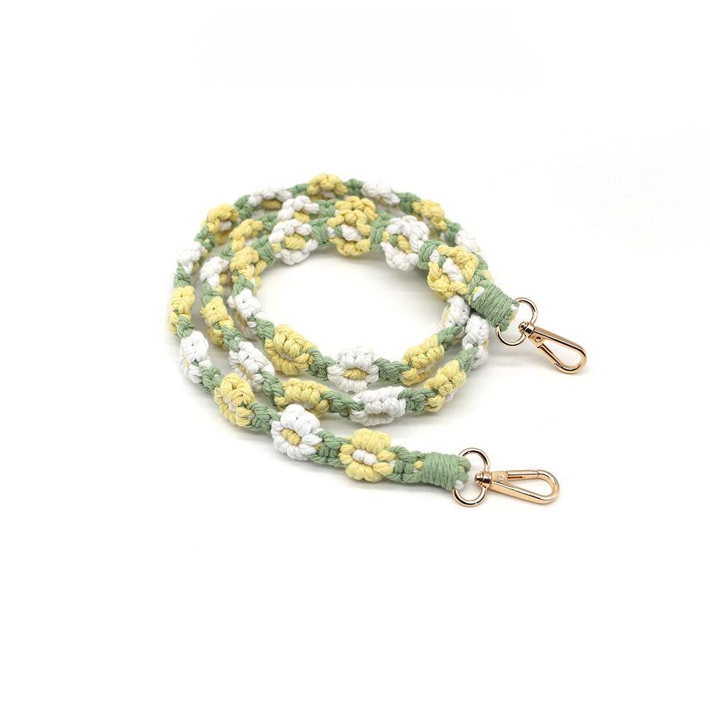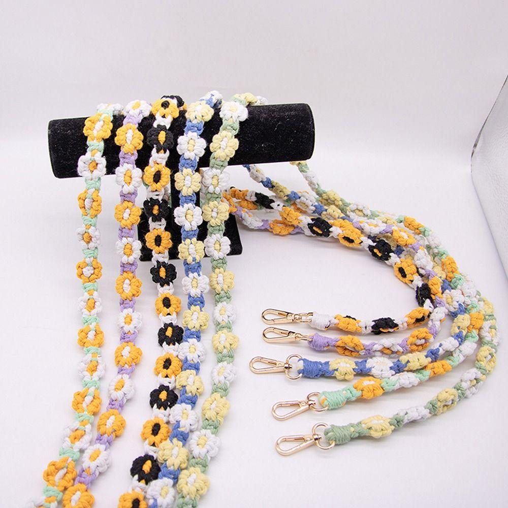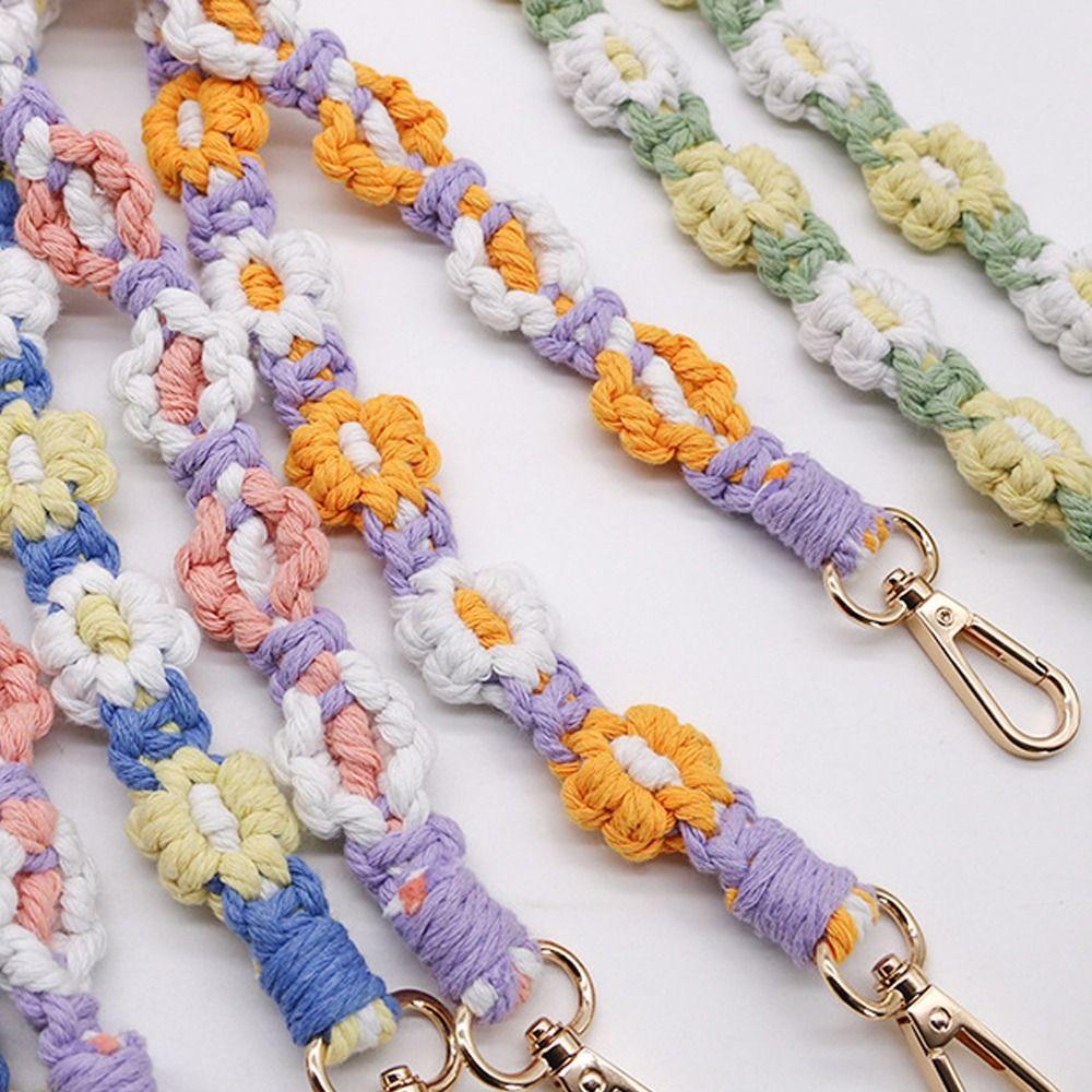 Плетеный ремешок для мобильного телефона с цветком, ручная работа, плетеная цепочка для сумки, ремешок для сумки кроссбоди, аксессуары для сумки