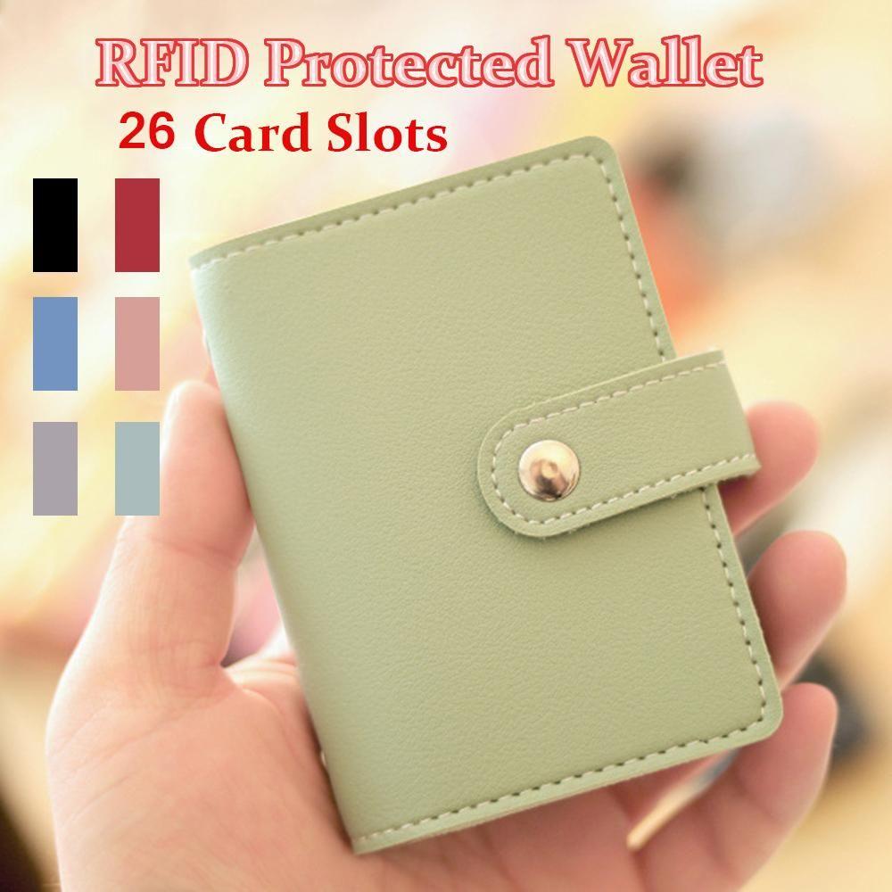 26 Card Slots Multi-function Candy Color Purse PU Leather Credit Card Holder Wallet RFID Blocking