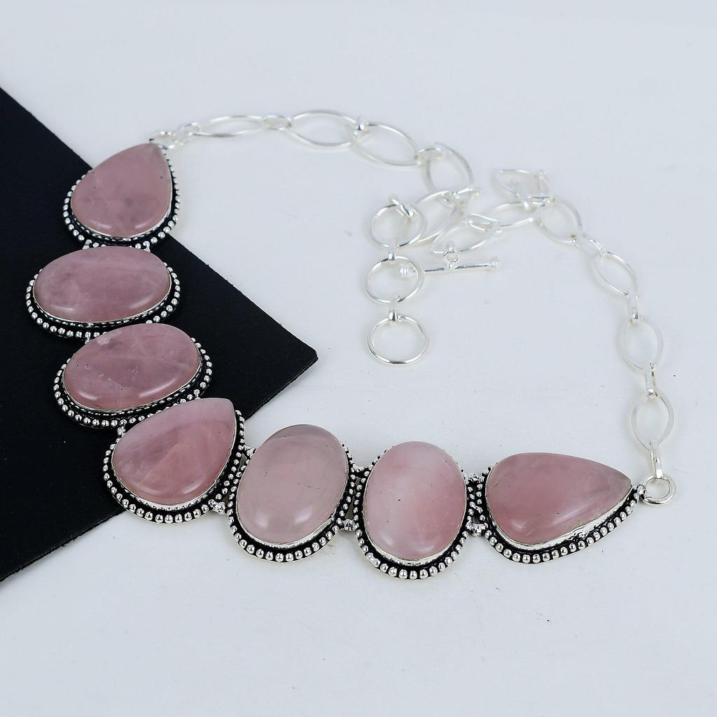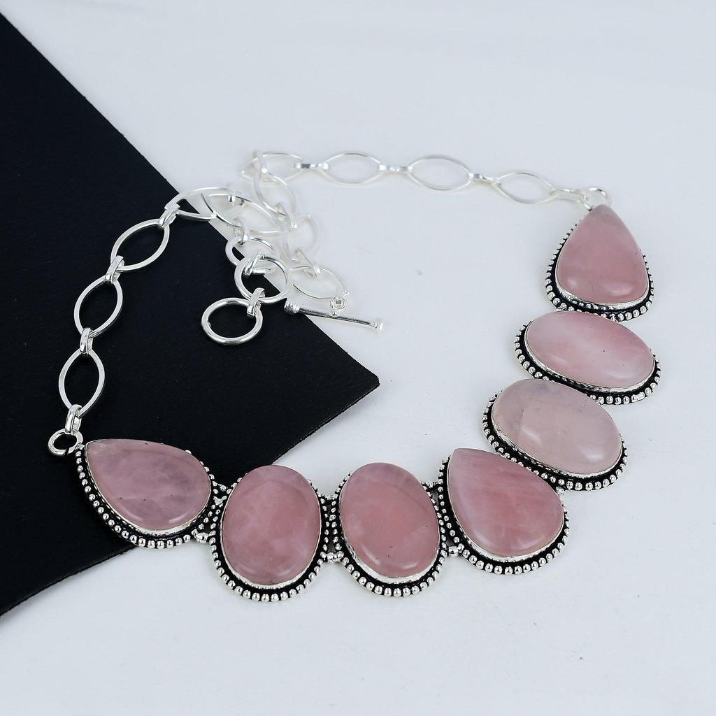 Изящное ожерелье из серебра 925 пробы с драгоценными камнями из розового кварца, серебряное ожерелье из розового кварца для жены, ожерелье унисекс, подарок на Рождество