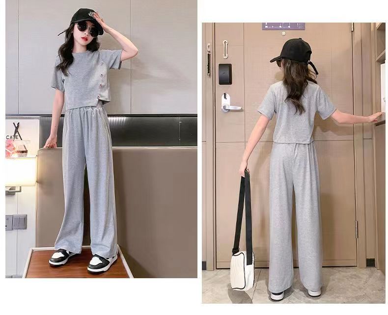 Летние комплекты одежды для девочек, детские повседневные футболки с коротким рукавом + свободные брюки, комплект из 2 предметов детской одежды