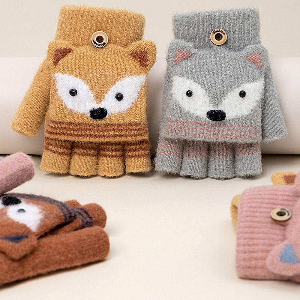 Палец Осень Зима Милые Вязаные Перчатки Перчатки без пальцев с откидным верхом Детские Варежки Теплые Перчатки