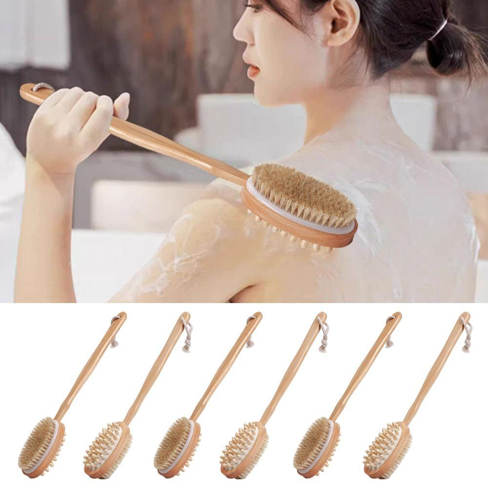 Длинная деревянная ручка для тела, скраб для ванны, двухсторонняя щетка для душа, прочный скраб для ванной комнаты