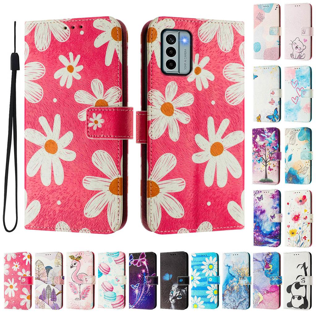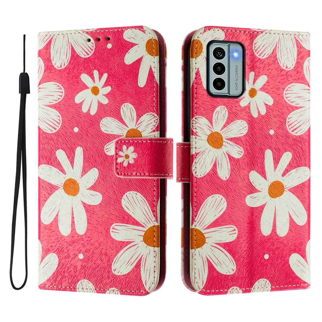 Роскошный кожаный чехол-книжка с розовым рисунком в виде ромашки для Nokia C12,C32,C02,C22,G22,G11 4G,G21,G42,G10,G20,C10,C20,HMD Pulse...